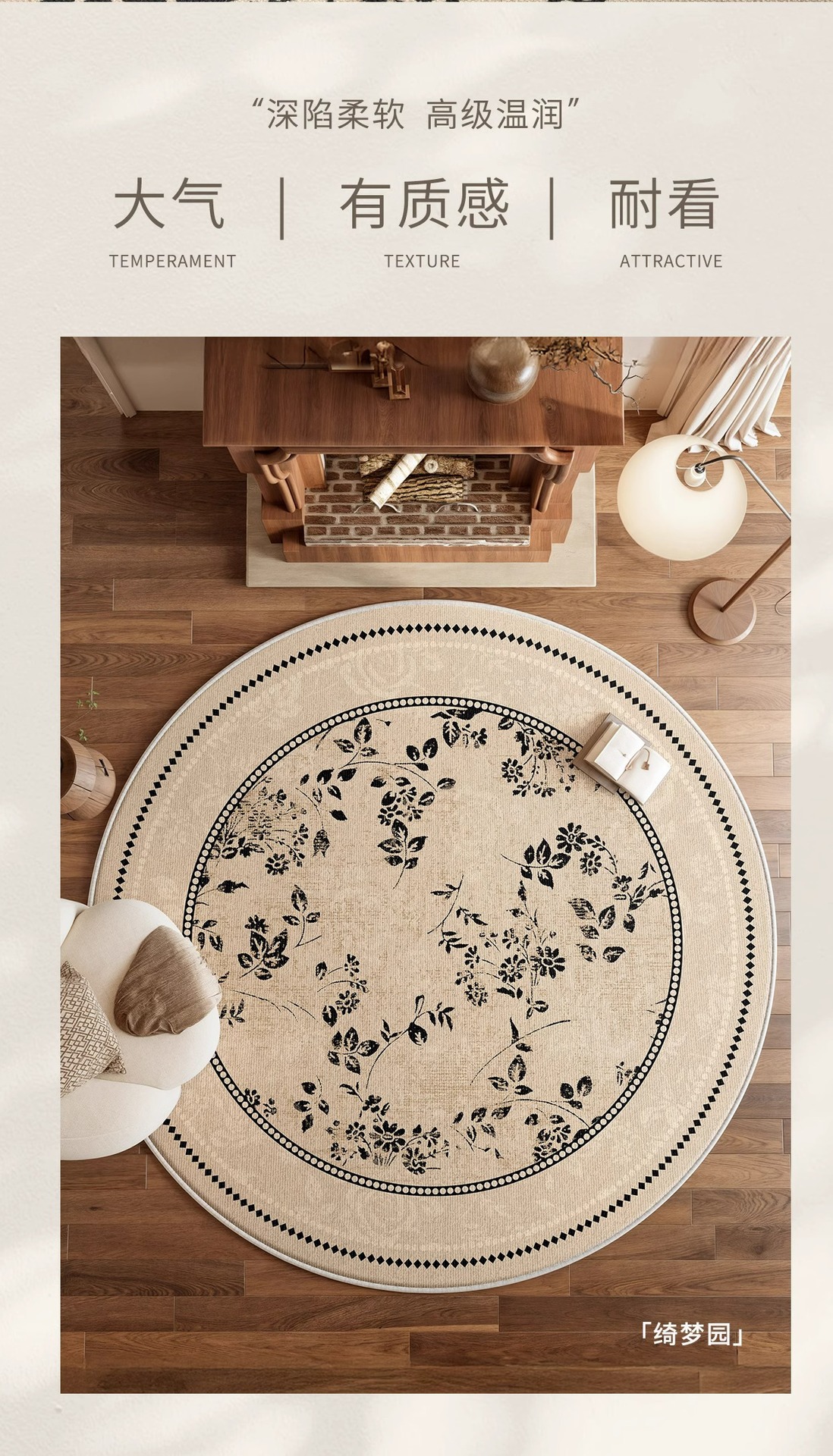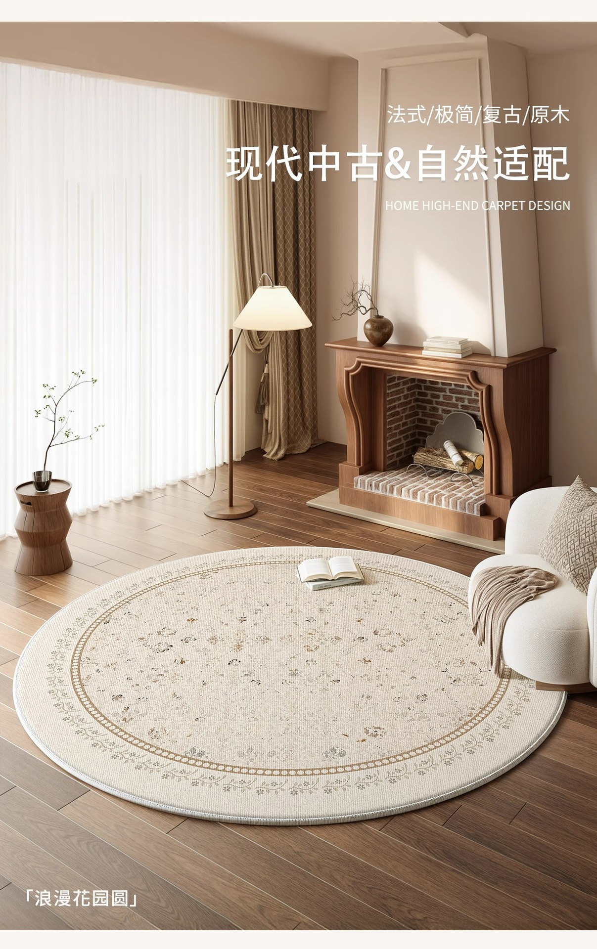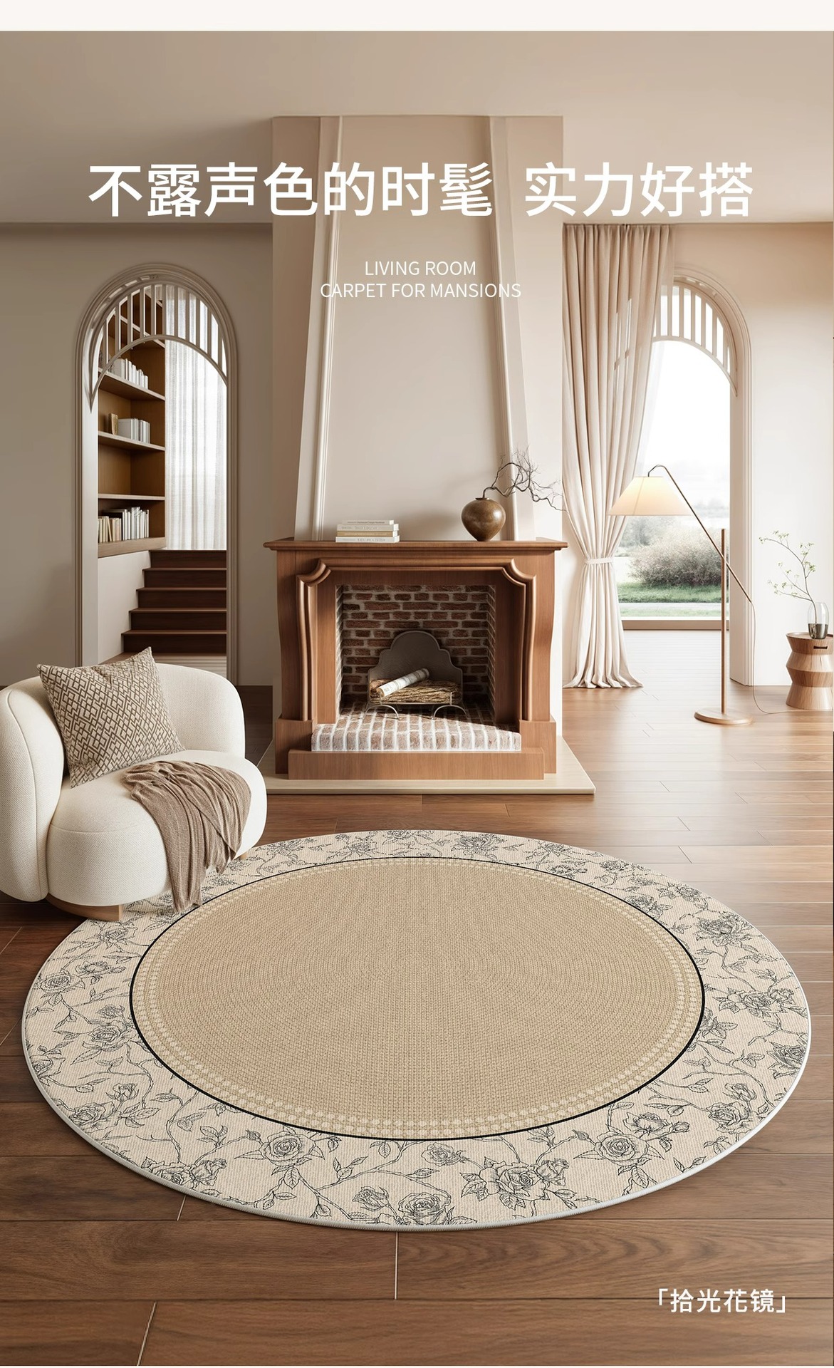 【法式中古风🖤原纱抗+0甲醛】 衣帽间化妆间地垫 圆形地毯惊艳上线!✨母婴可用、防滑抗菌、擦即净,轻松打造轻奢级客厅&卧室!
