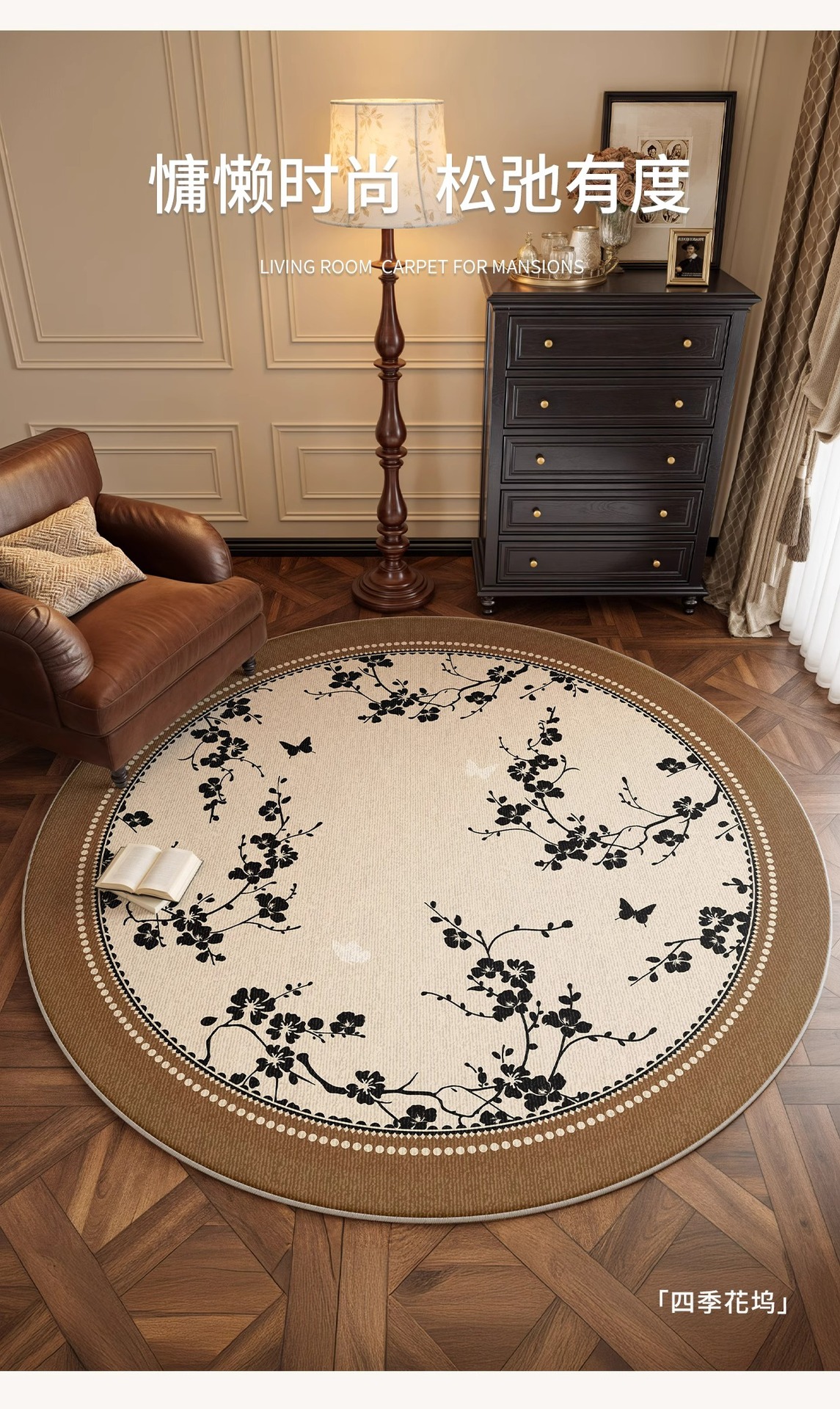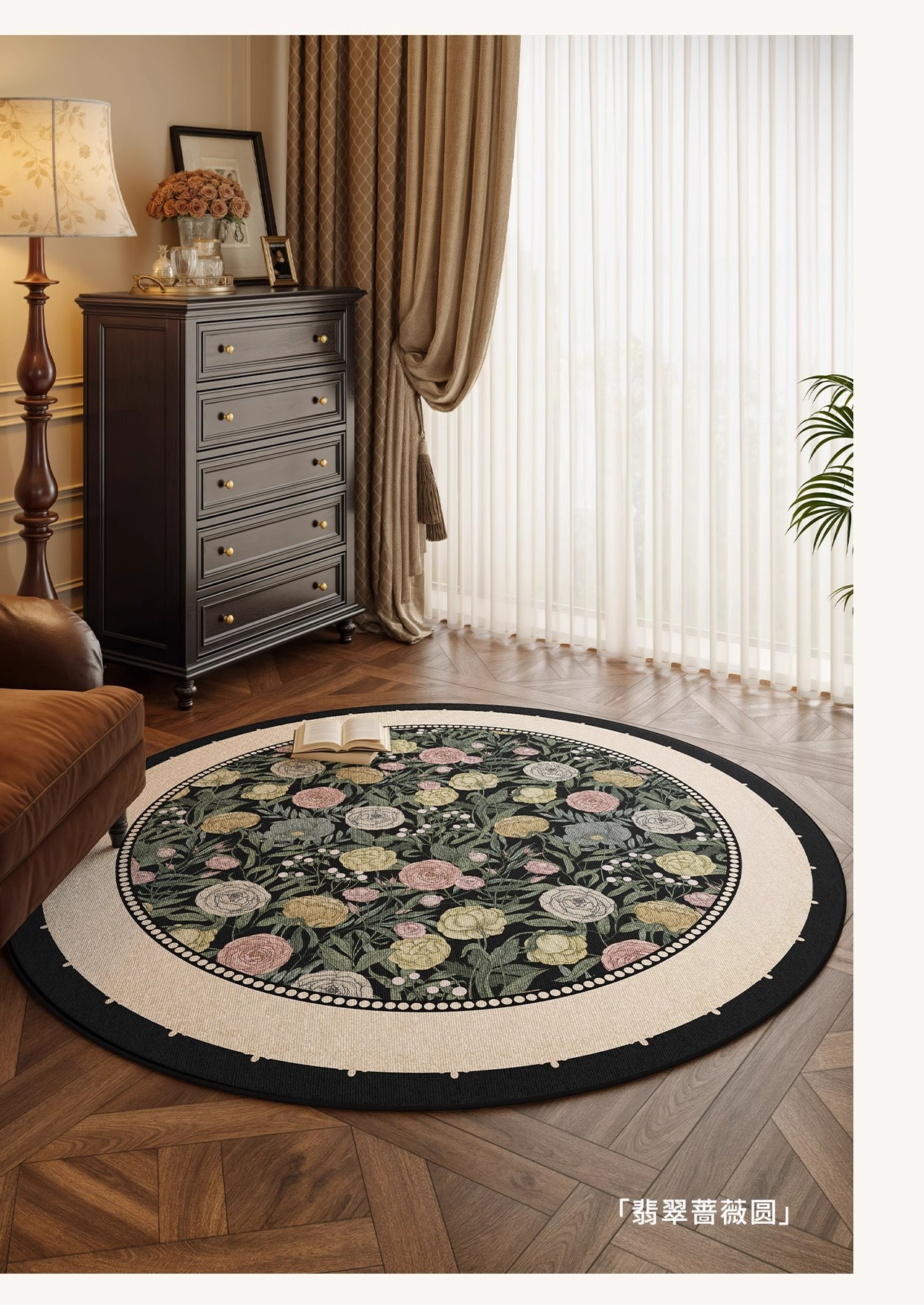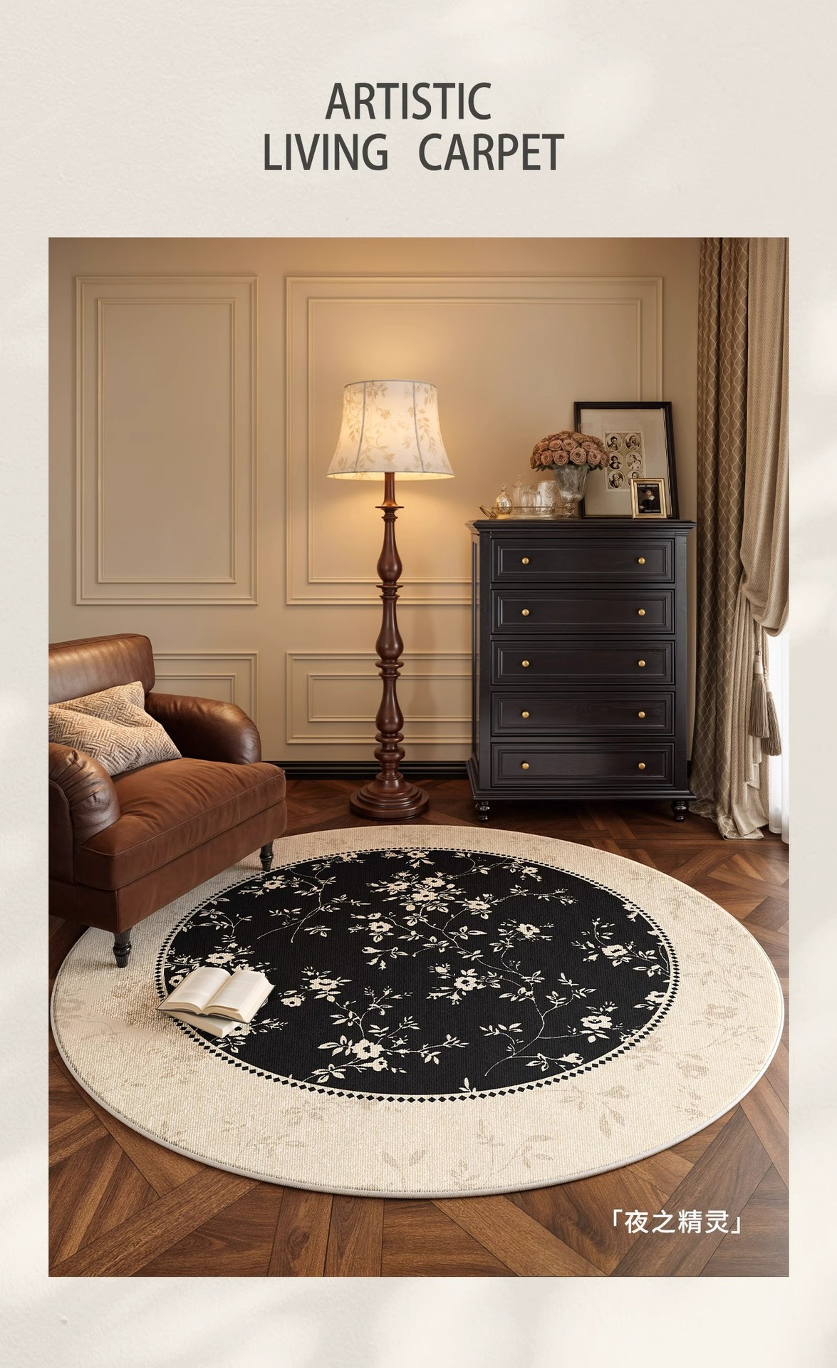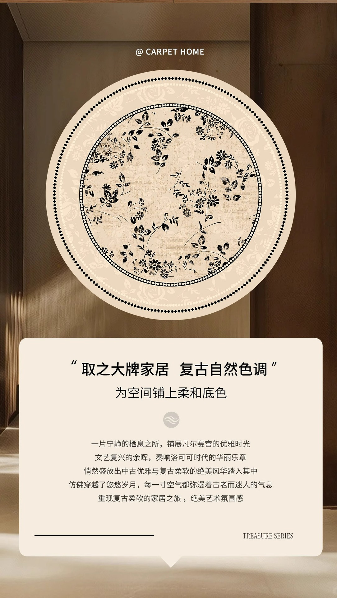 【法式中古风🖤原纱抗+0甲醛】 衣帽间化妆间地垫 圆形地毯惊艳上线!✨母婴可用、防滑抗菌、擦即净,轻松打造轻奢级客厅&卧室!