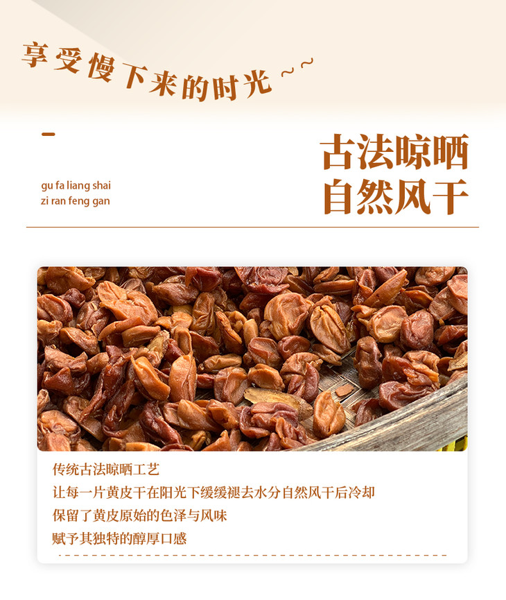 4.每个批次成然度不同,所以黄皮干不同批次口感可能会有略微区别。