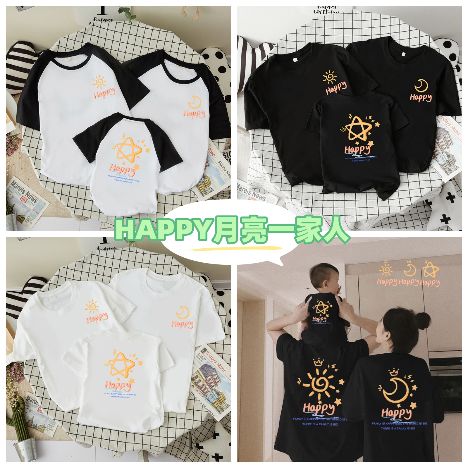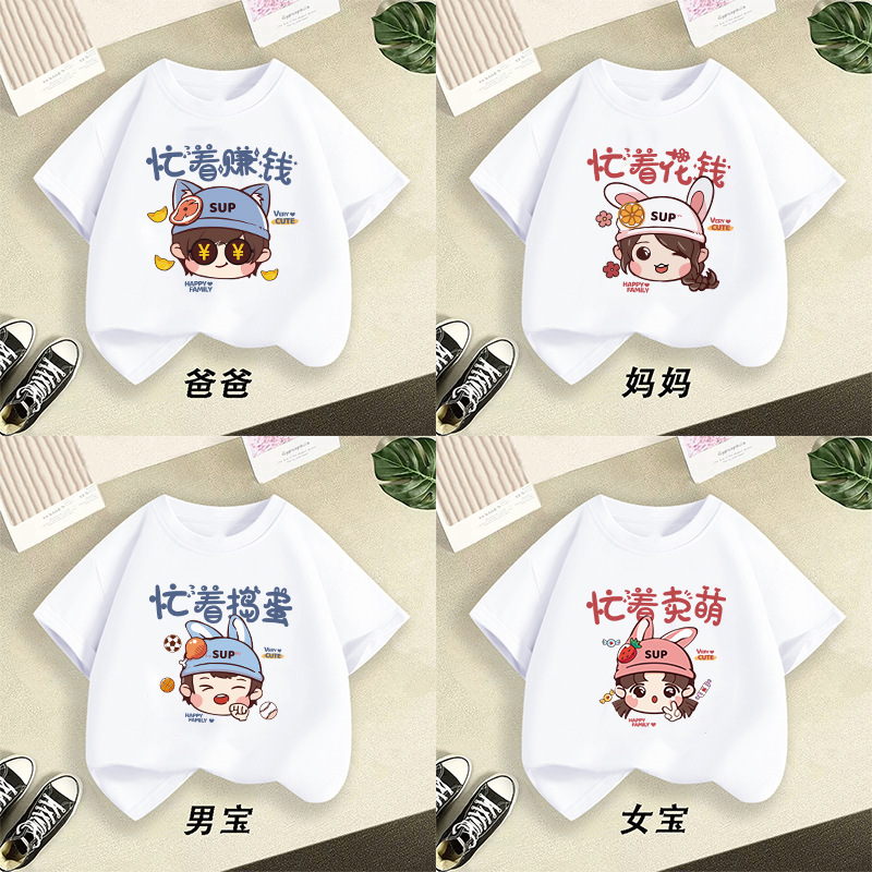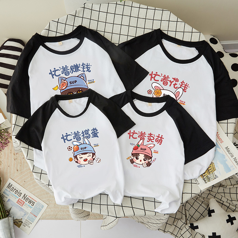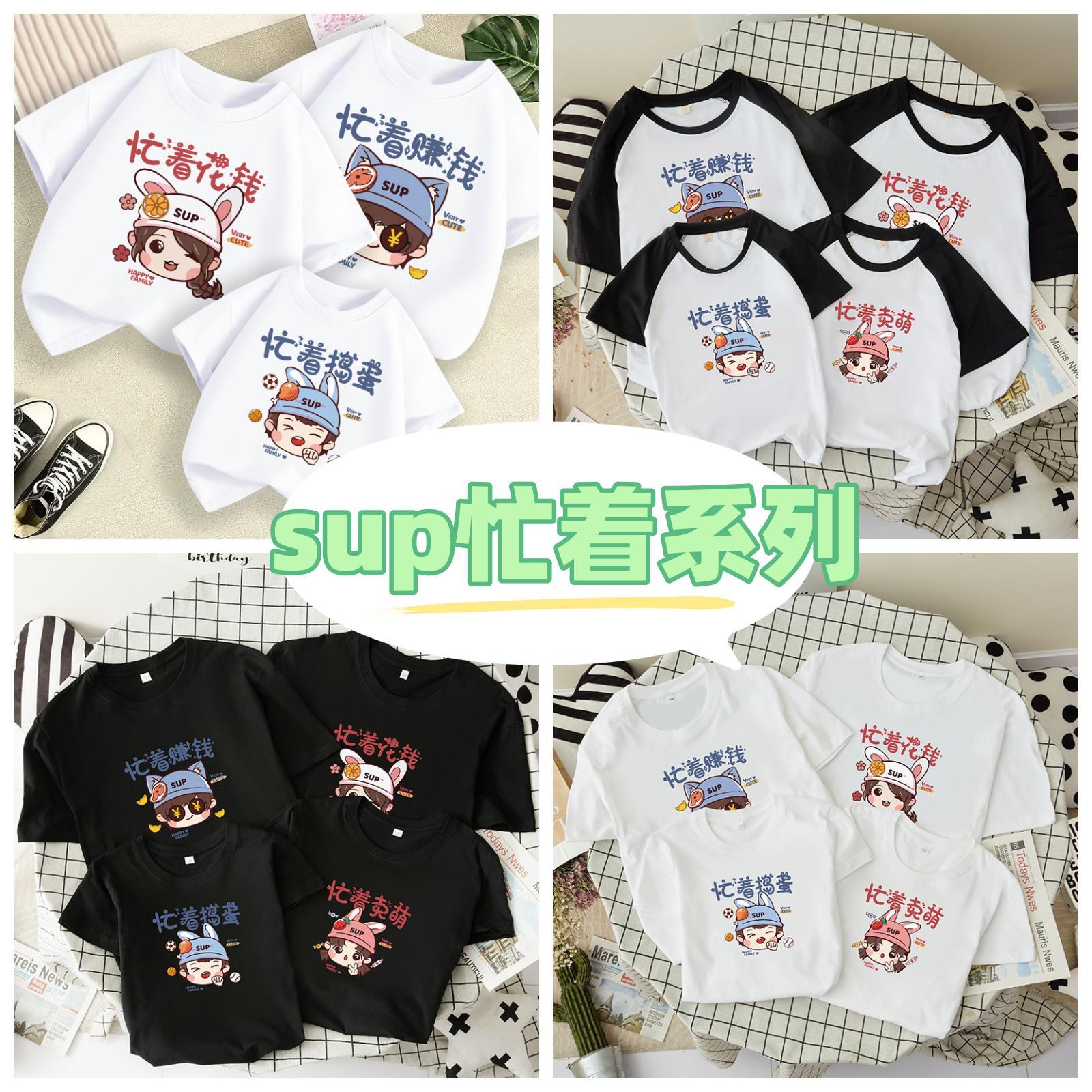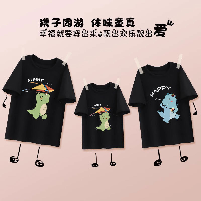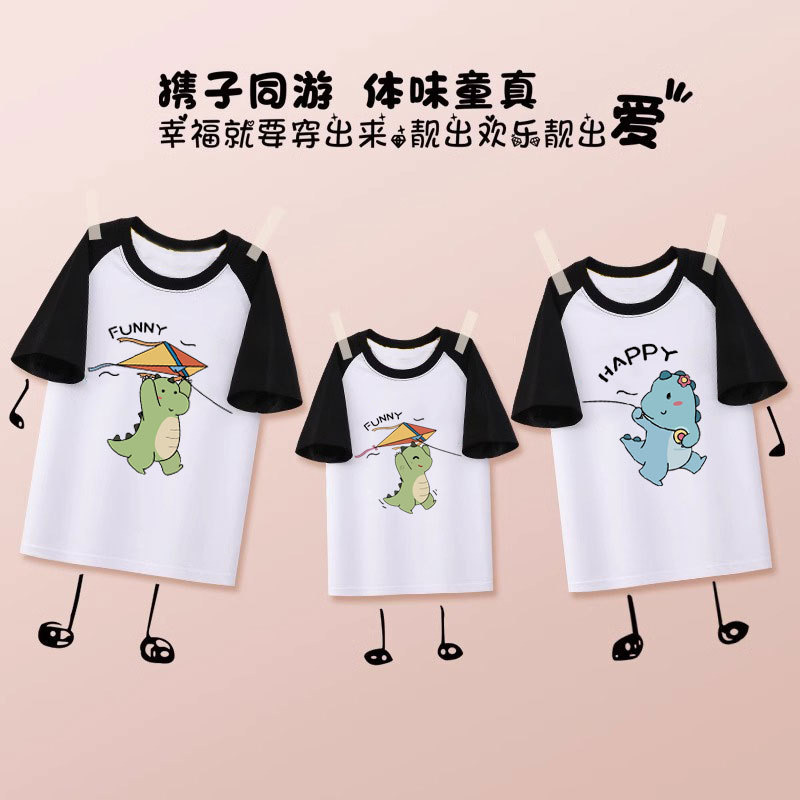 亲子装夏款纯棉短袖一家三口四口2024新款夏季母子母女全家装t恤