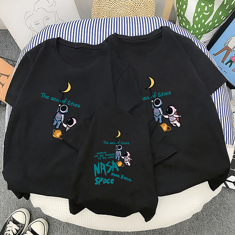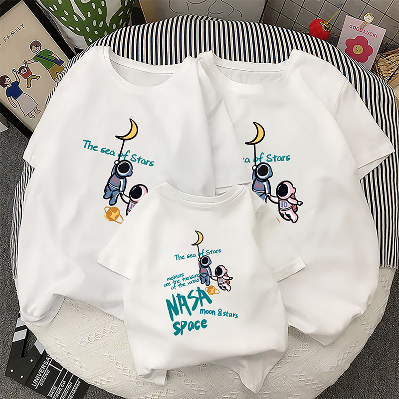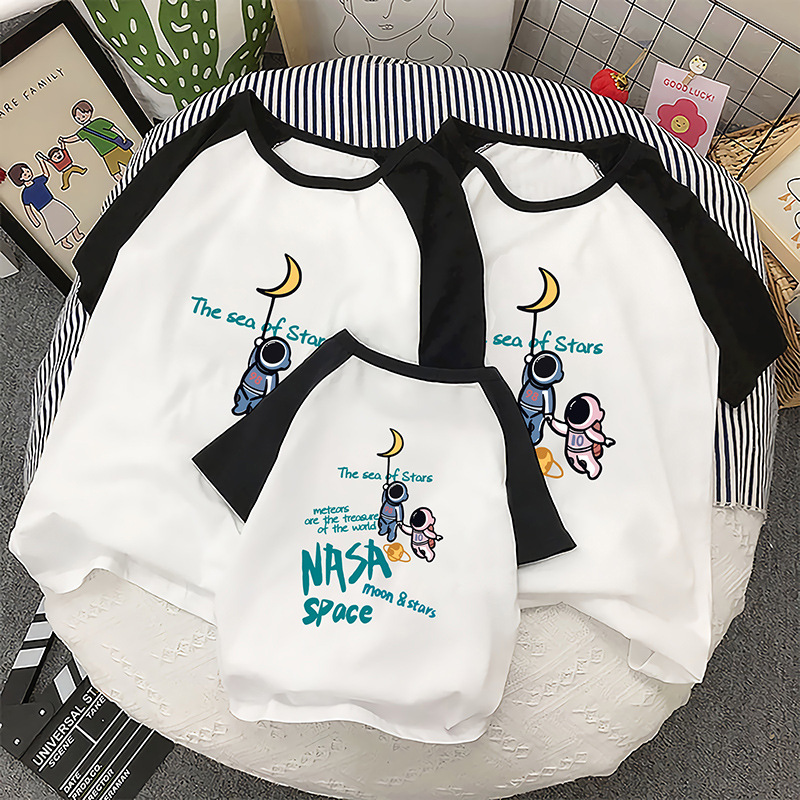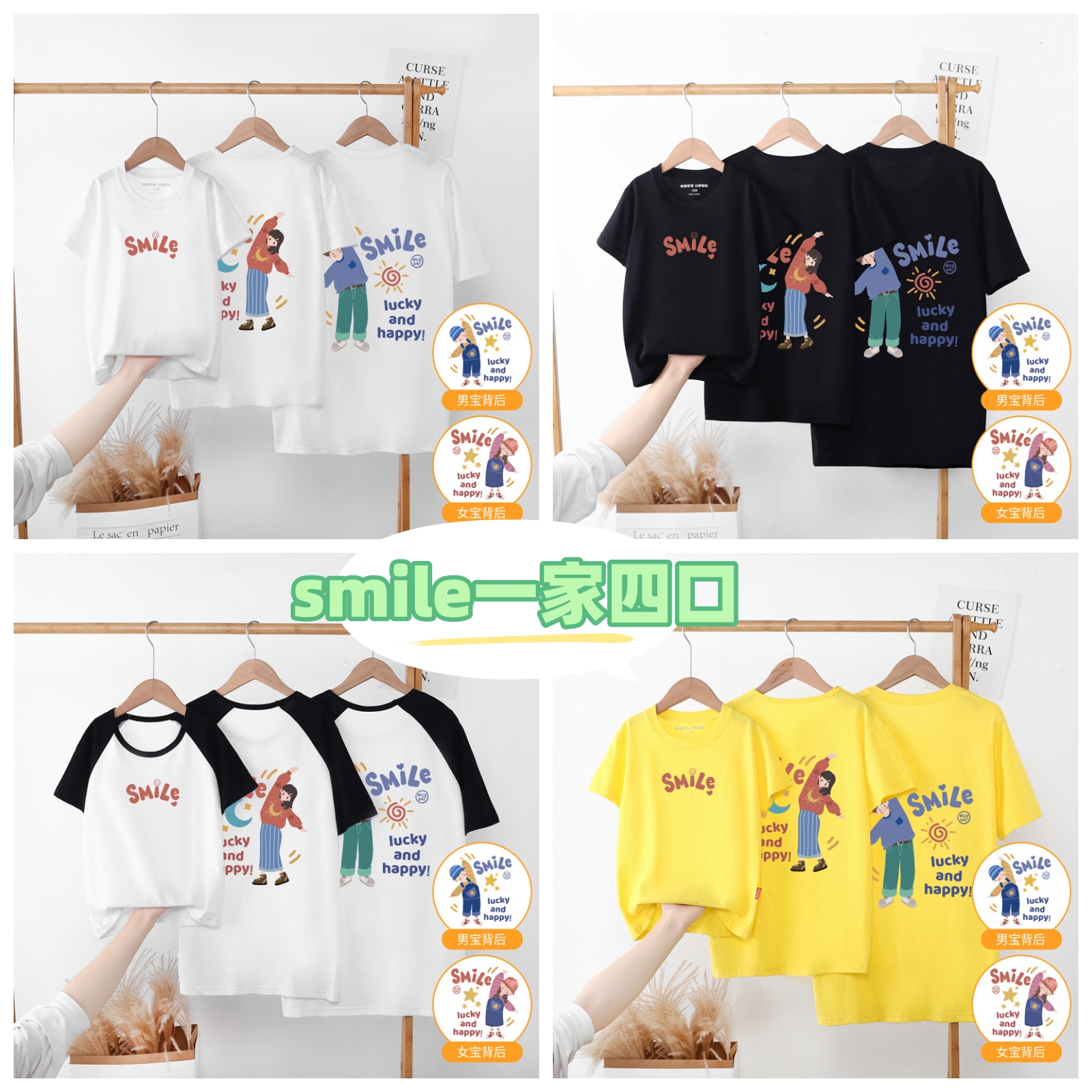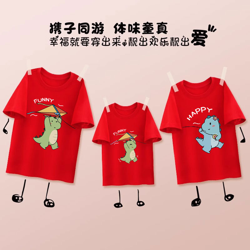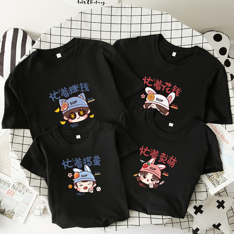亲子装夏款纯棉短袖一家三口四口2024新款夏季母子母女全家装t恤