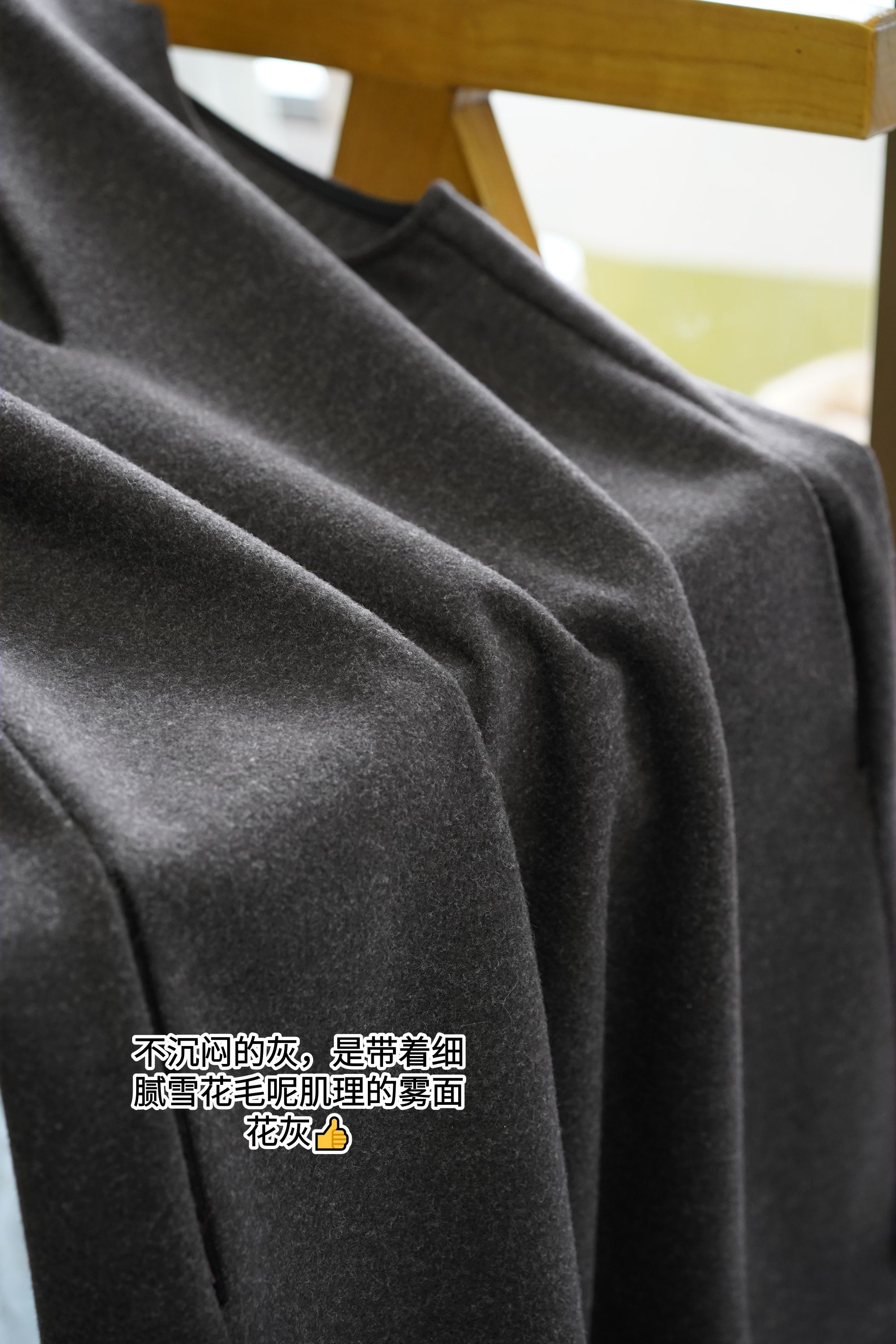 表面呈现细腻的毛呢肌理,保暖性优异,同时不易起球、变形,耐穿性强,雾花灰色调低调百搭,
