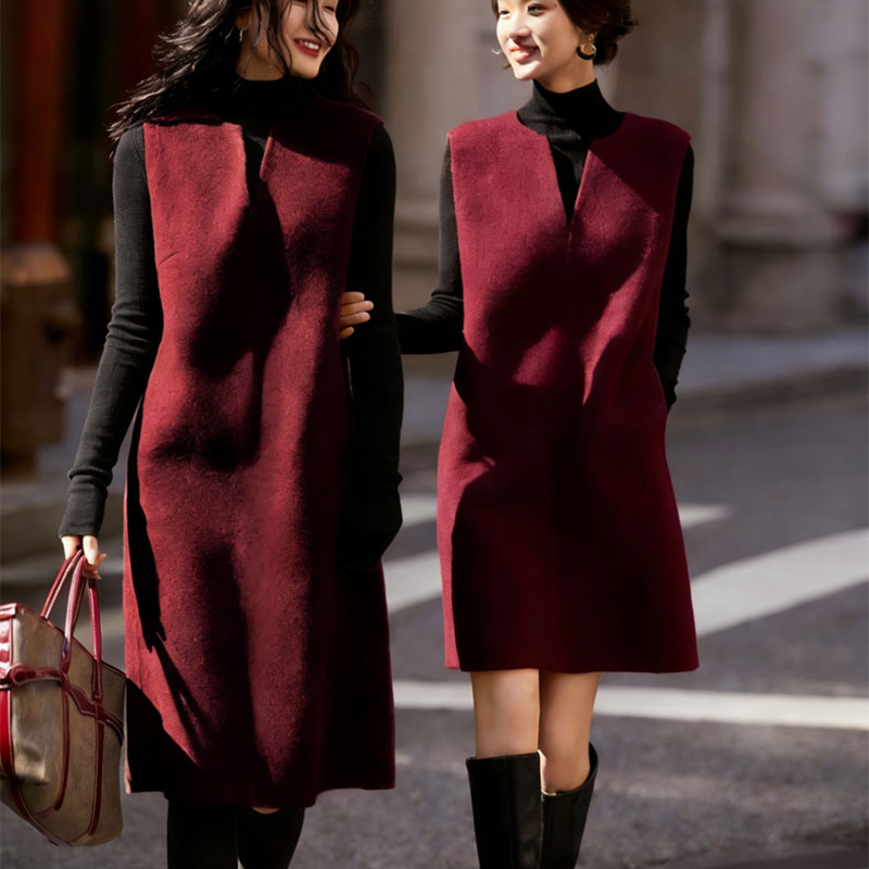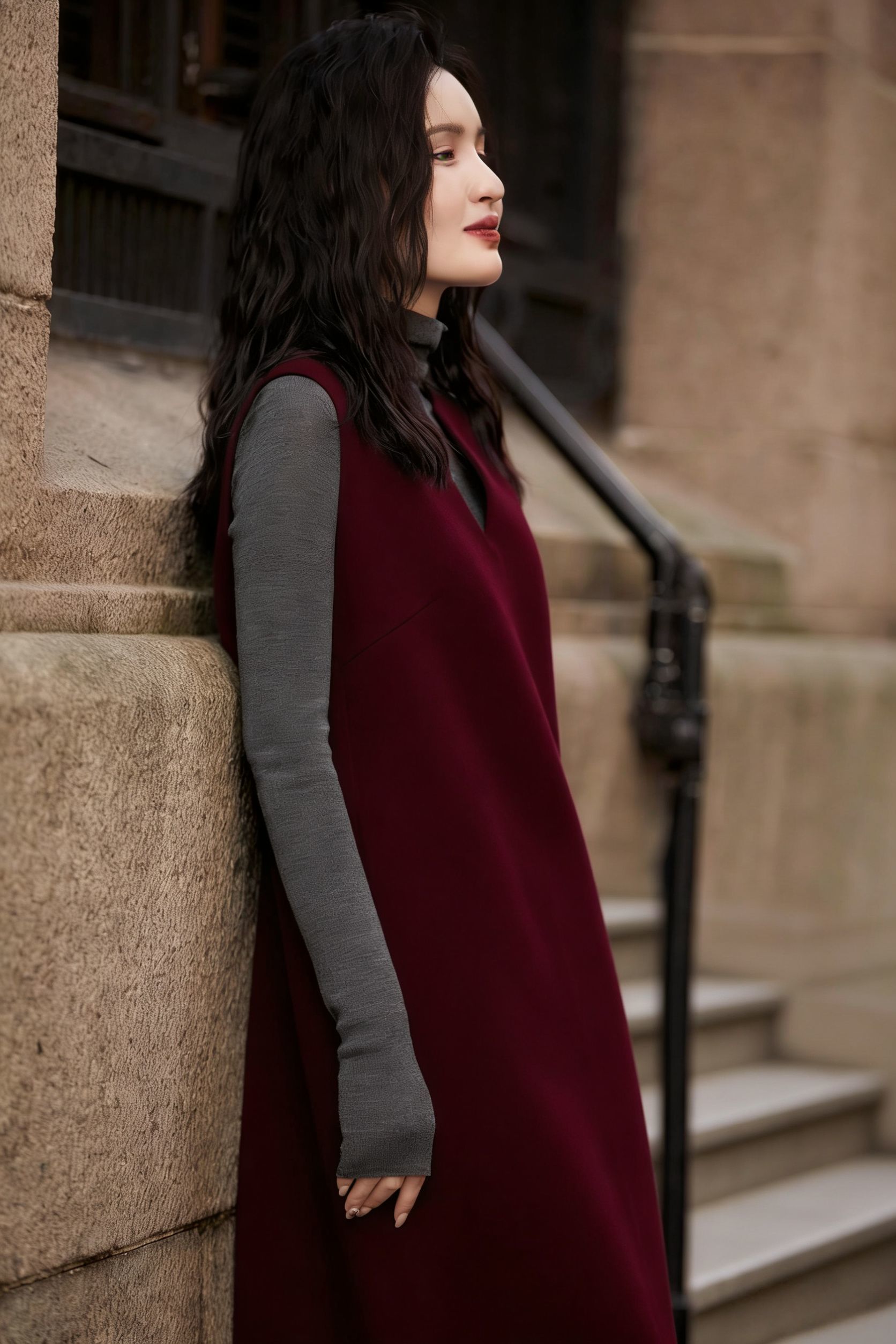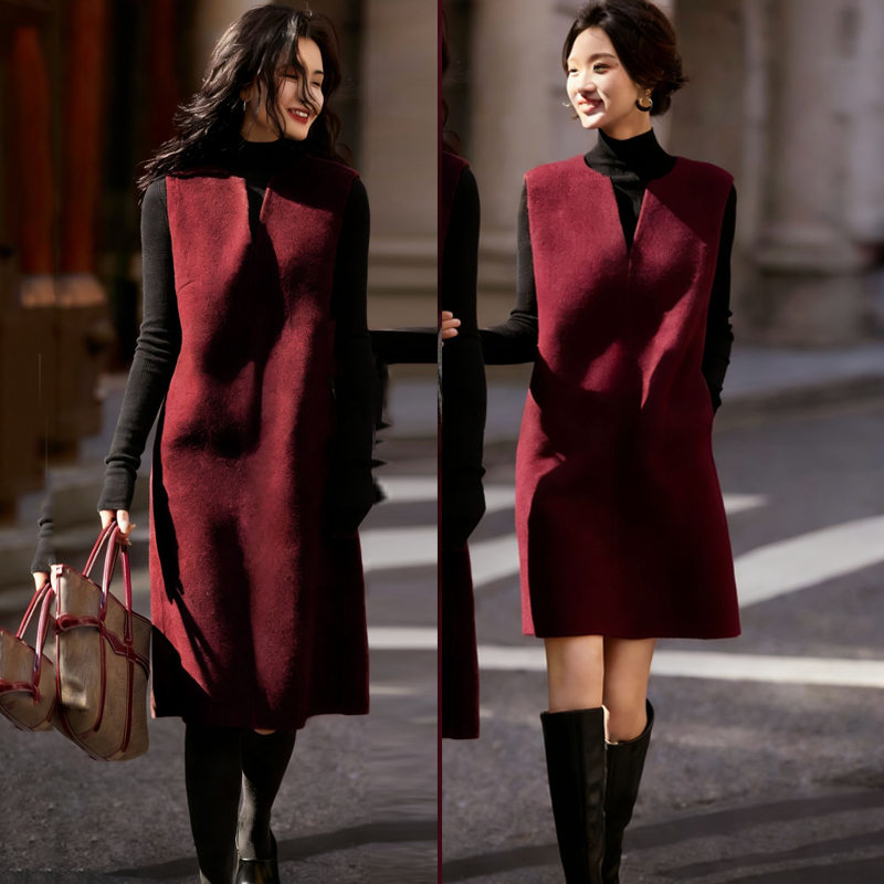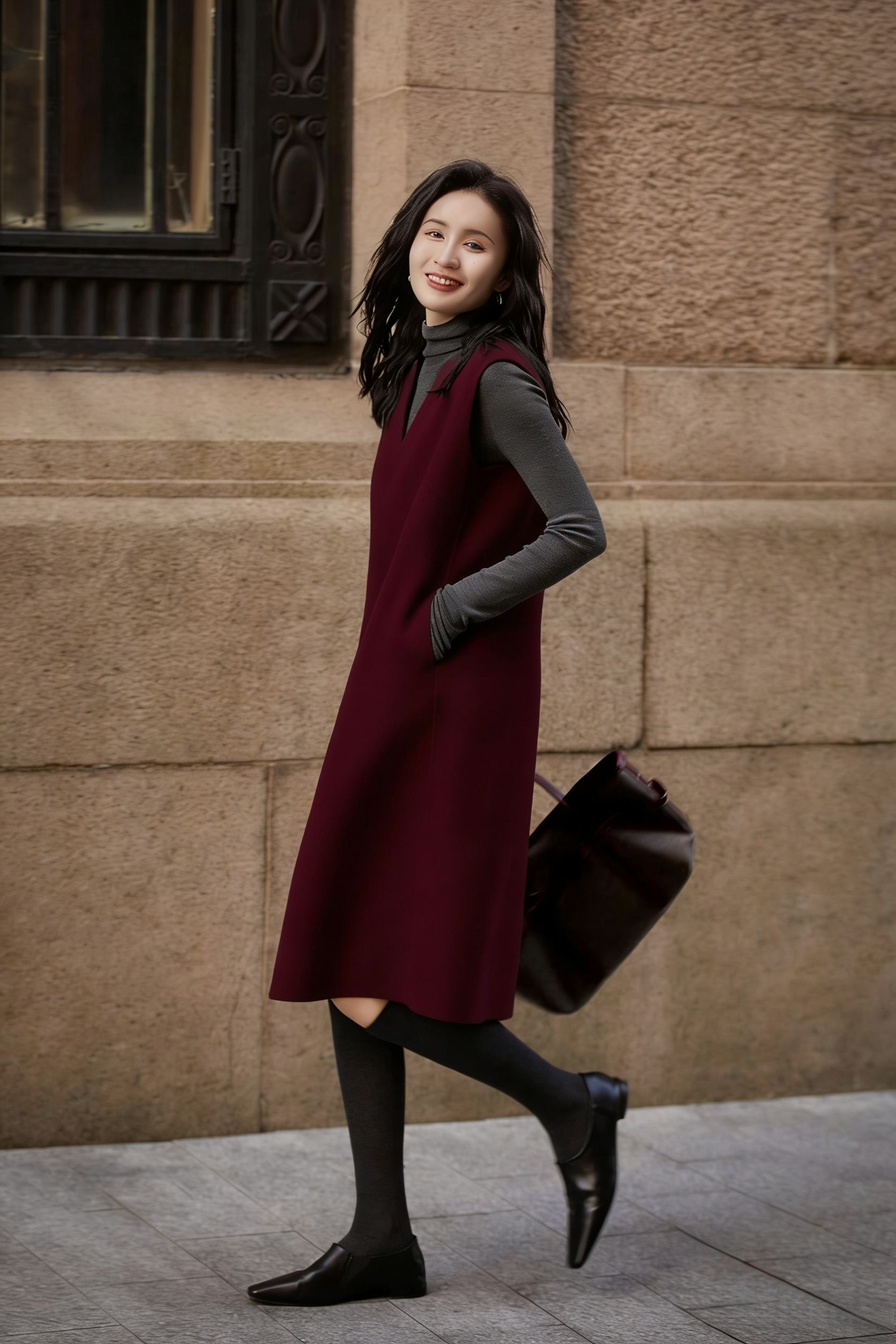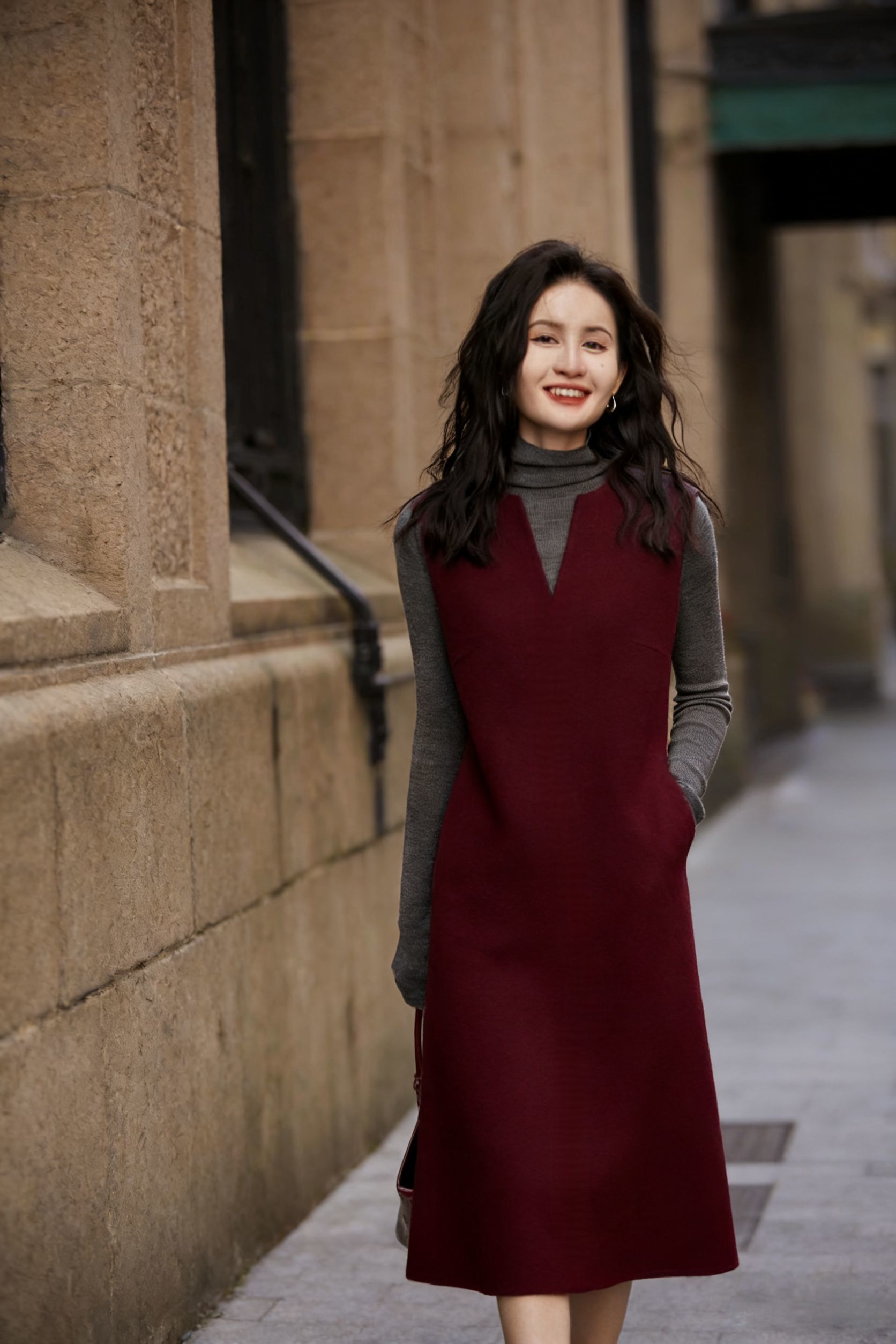 秋冬衣柜里的“王炸”单品,非这款安可拉红色毛呢无袖裙莫属!
