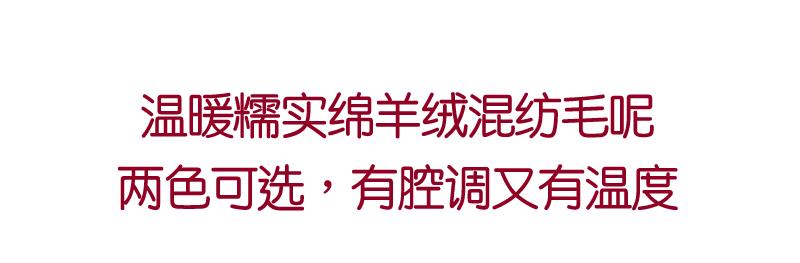 甄选软糯的毛呢面料,触感细腻还自带挺括感,保暖性完全不输毛呢外套。