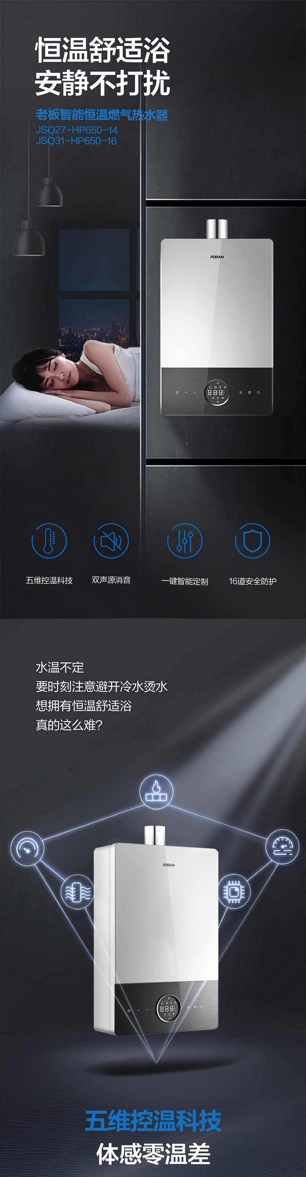 老板智感温双温精控恒温燃气热水器JSQ27-HP650-14