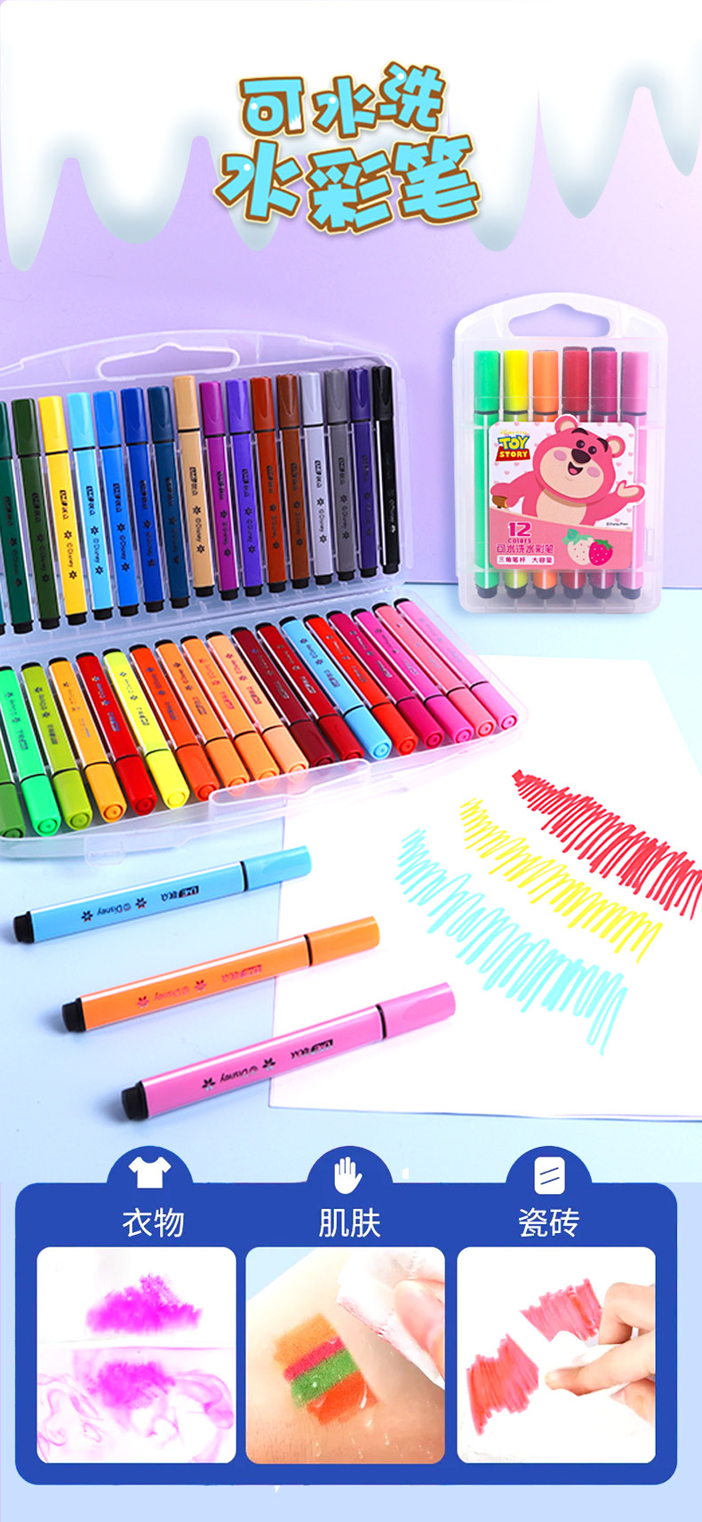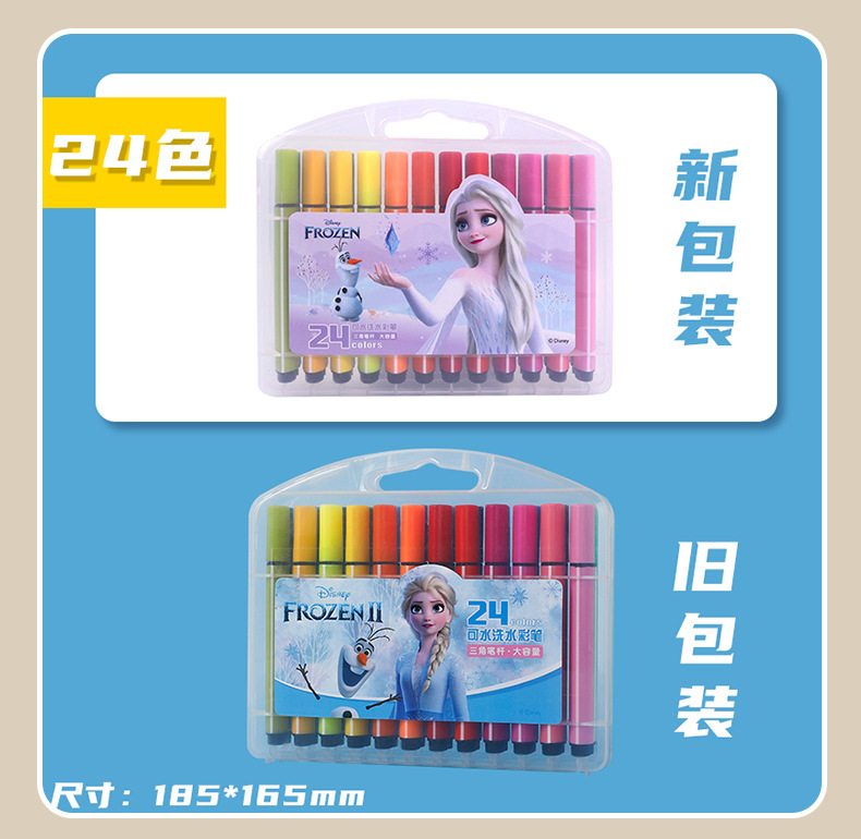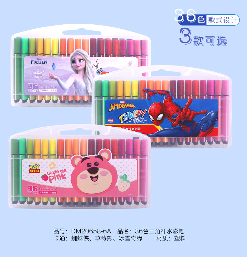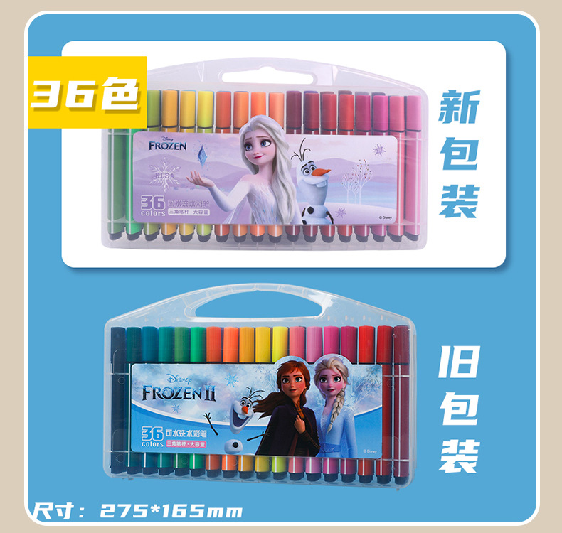 迪士尼水彩笔儿童水性12色24色36色画笔幼儿园可水洗三角杆彩色笔笔盒开学季文具套装