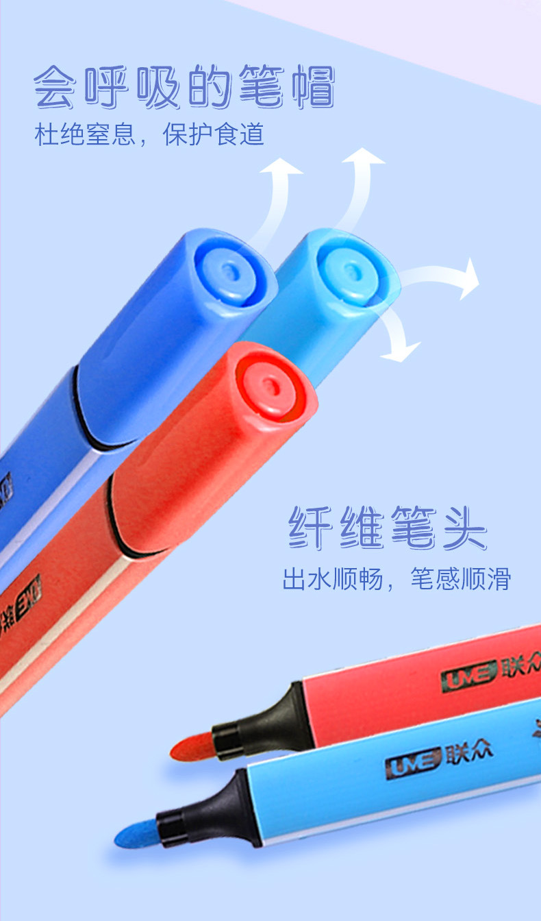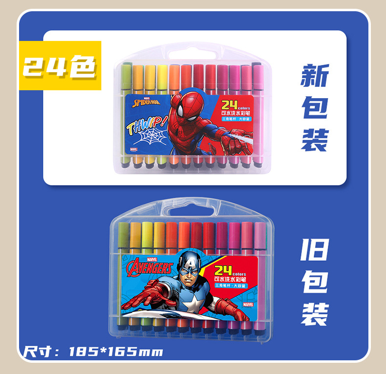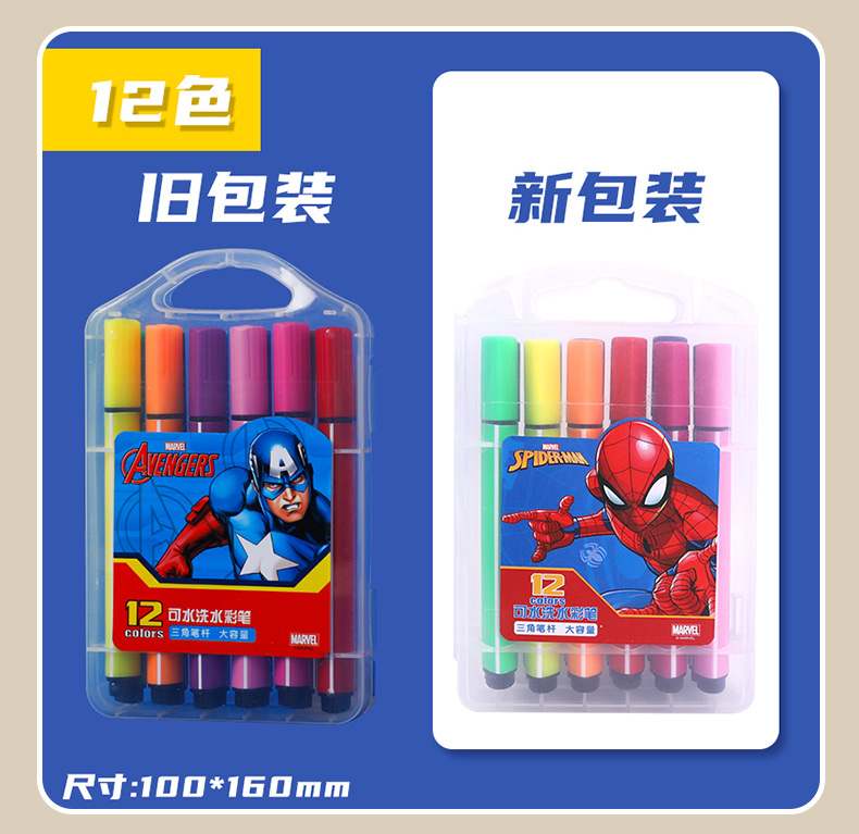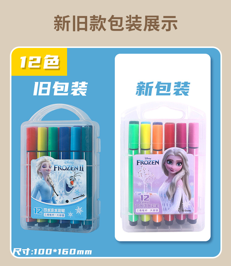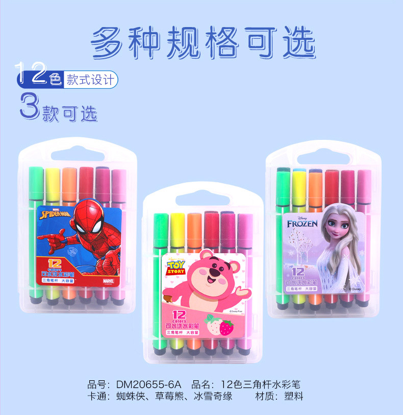 迪士尼水彩笔儿童水性12色24色36色画笔幼儿园可水洗三角杆彩色笔笔盒开学季文具套装