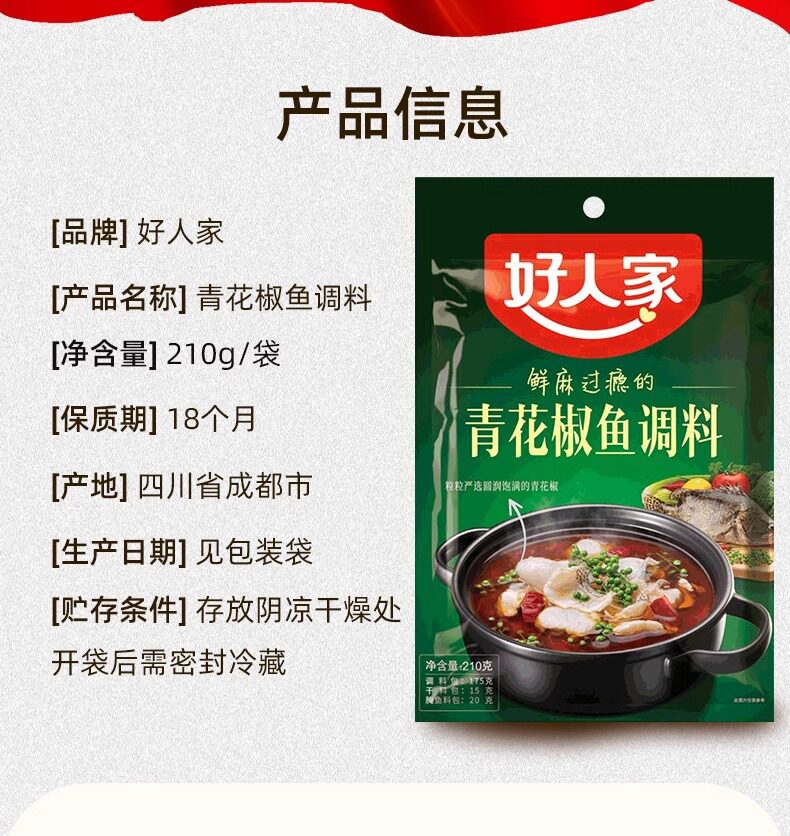 好人家青花椒鱼调料包210g整箱批发藤椒料火锅四川特产麻辣鱼底料 商品缩略图0 好人家青花椒鱼调料包210g整箱批发藤椒料火锅四川特产麻辣鱼底料 商品缩略图1 好人家青花椒鱼调料包210g整箱批发藤椒料火锅四川特产麻辣鱼底料 商品缩略图2 好人家青花椒鱼调料包210g整箱批发藤椒料火锅四川特产麻辣鱼底料 商品缩略图3