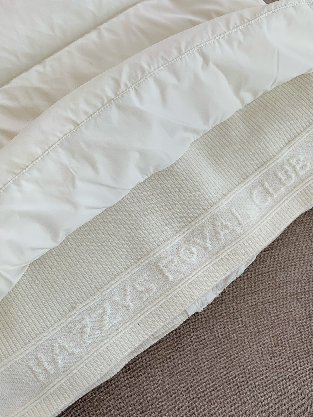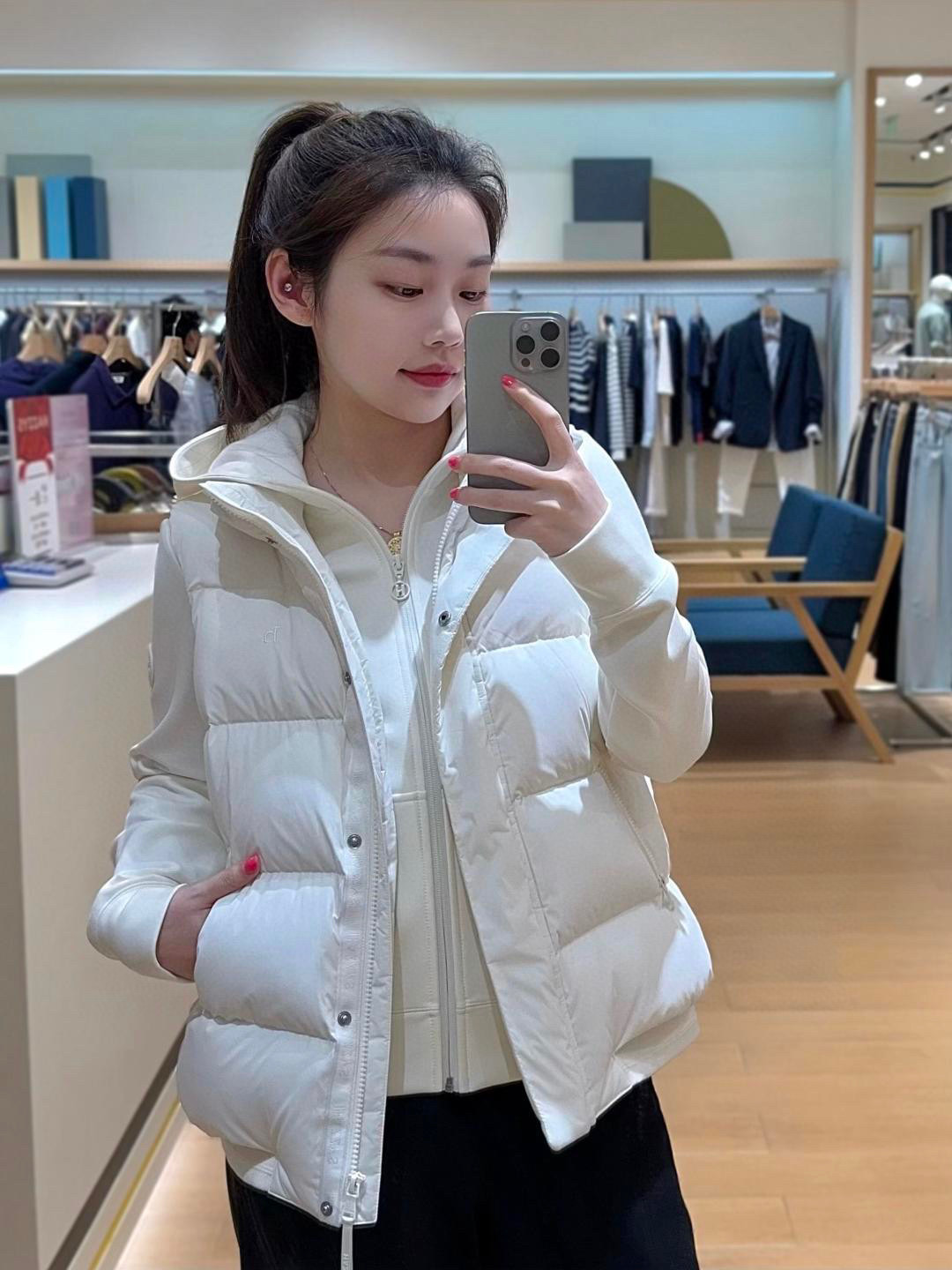 85%鸭绒填充,细腻的梭织面料,手感平滑,致密紧实,轻盈耐穿洗,全部选的大朵羽绒,整件衣服都很蓬松厚实!
