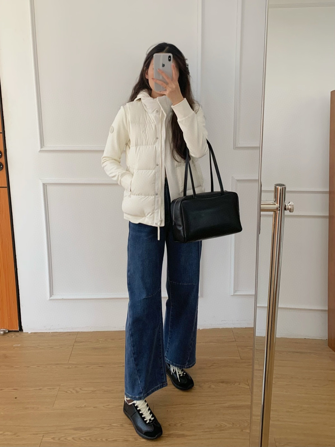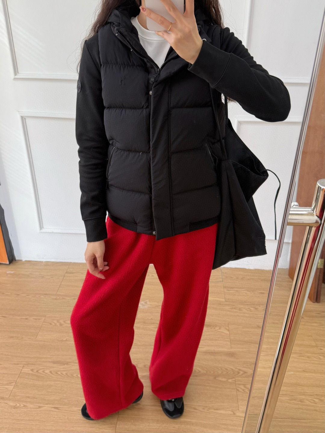 下摆拼接超宽针织,收束有型,利落又保暖。
