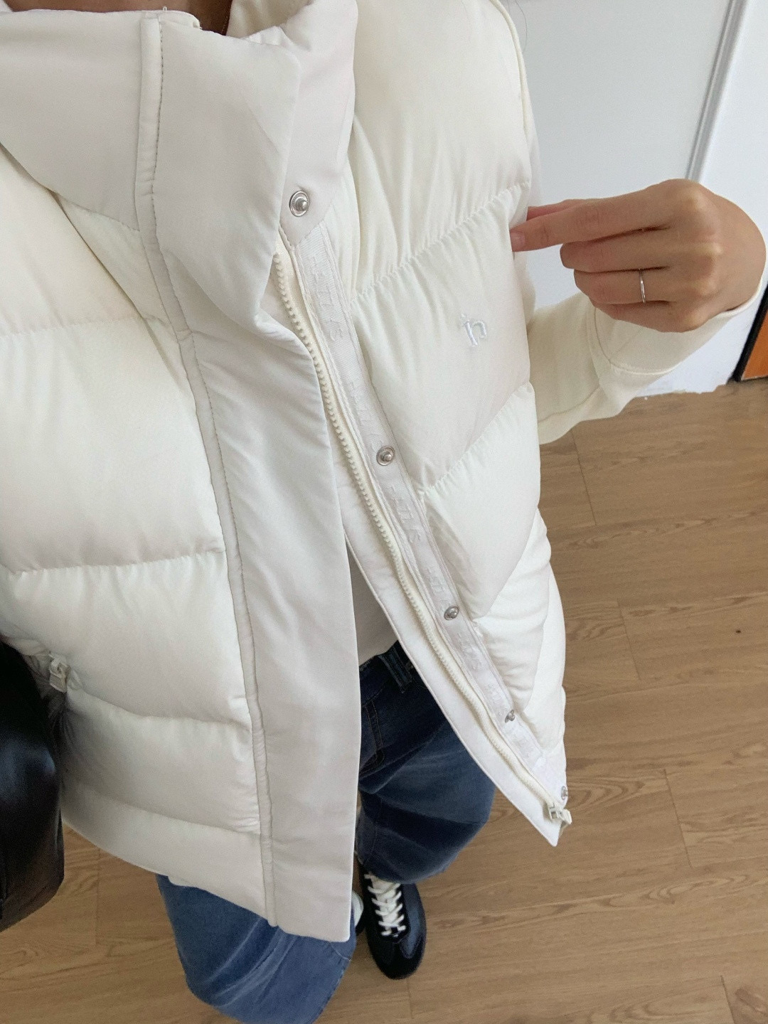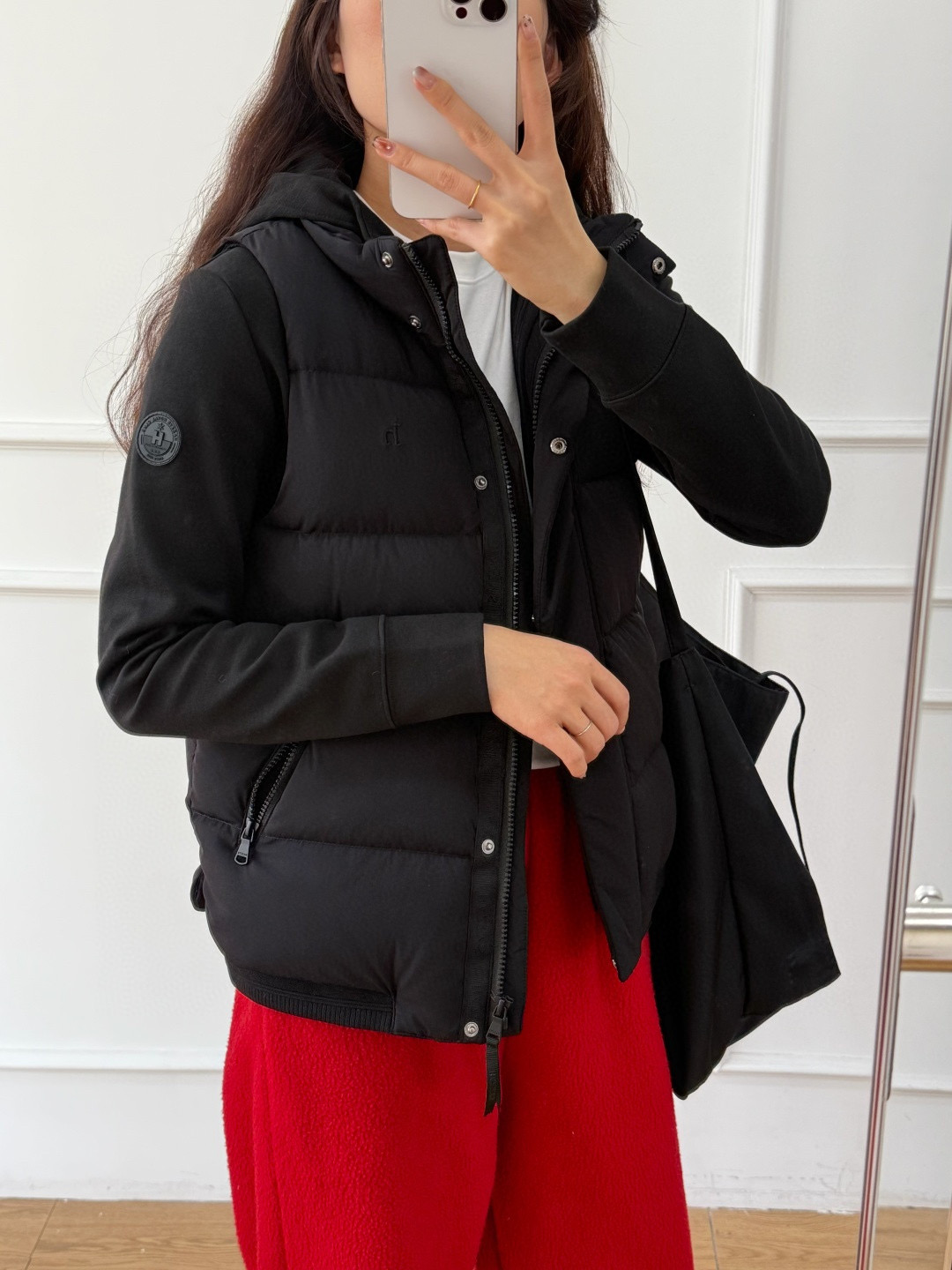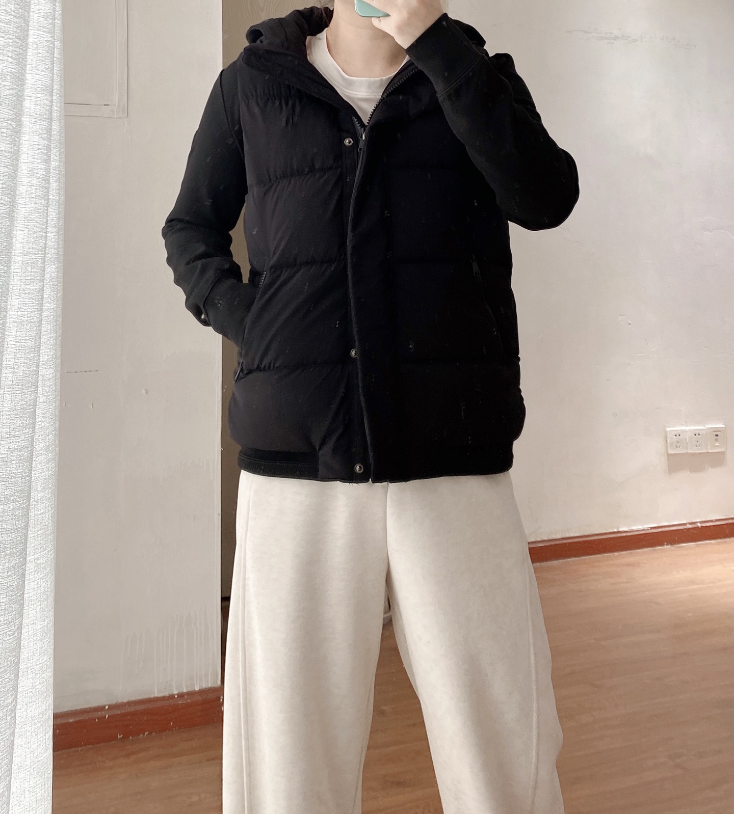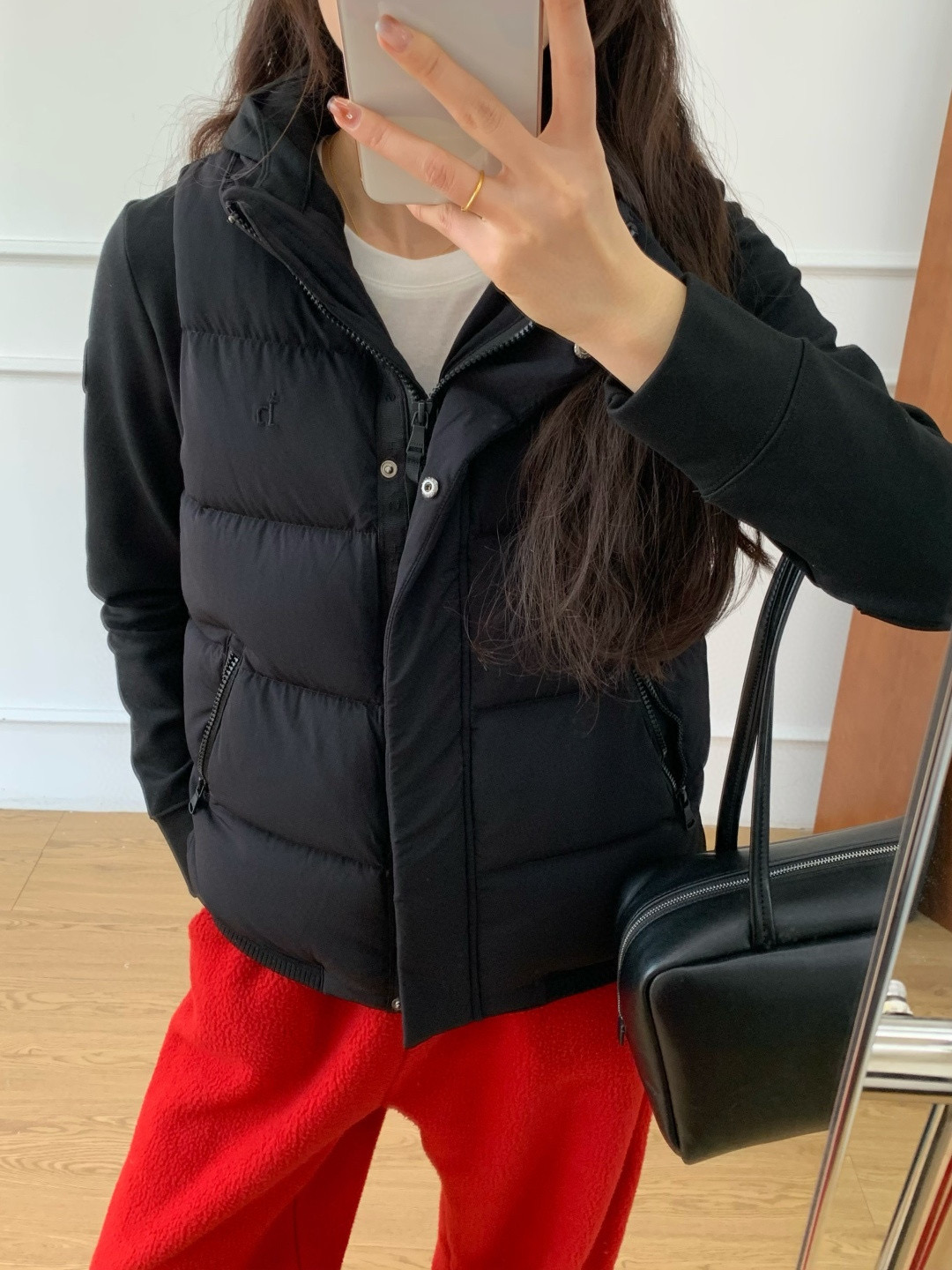 立领羽绒马甲+连帽磨绒内搭,两件可以一起组合穿搭,也可以自由拆开搭配。