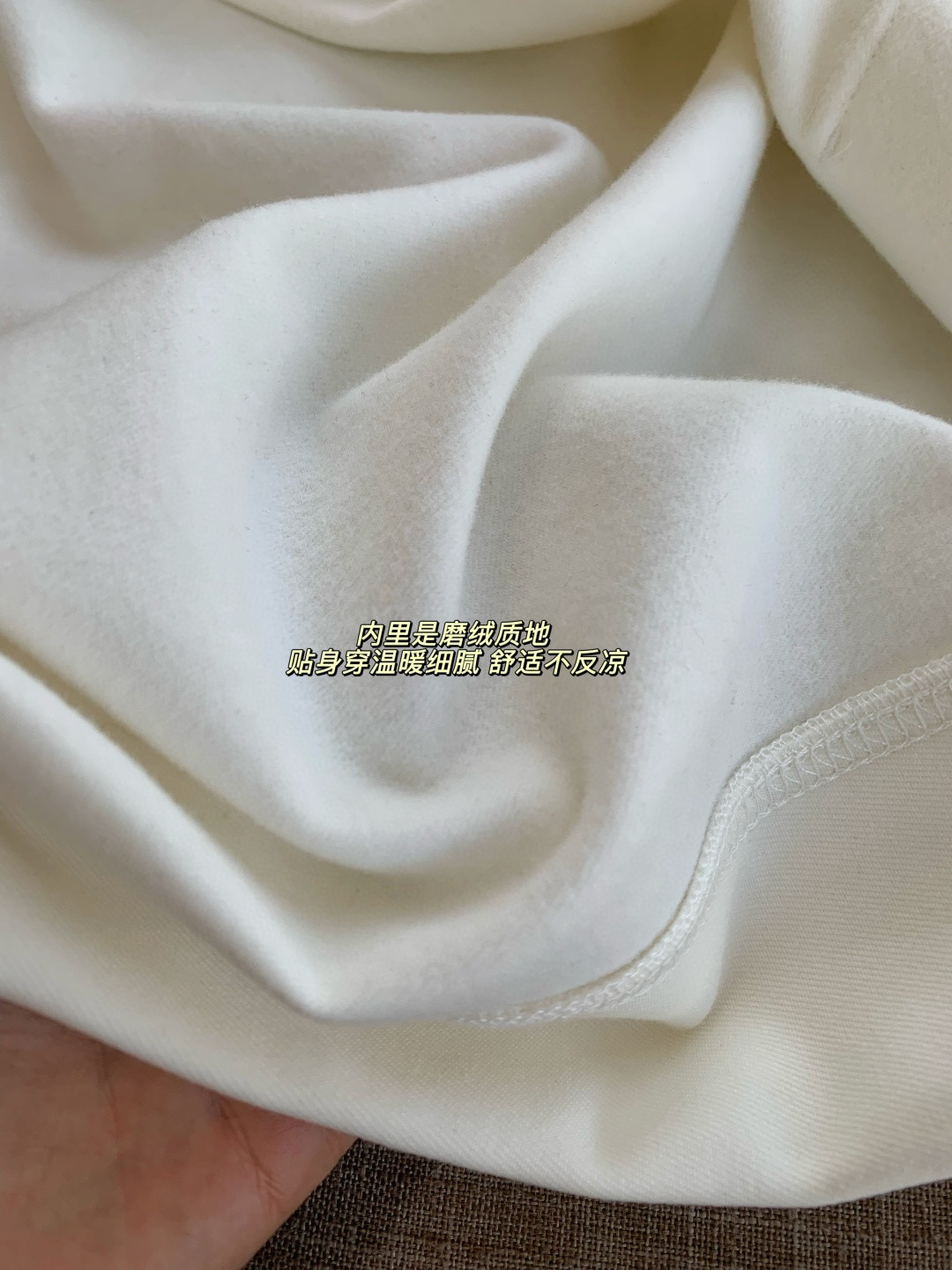 内里是磨绒质地,贴身穿温暖细腻,舒适不反凉。