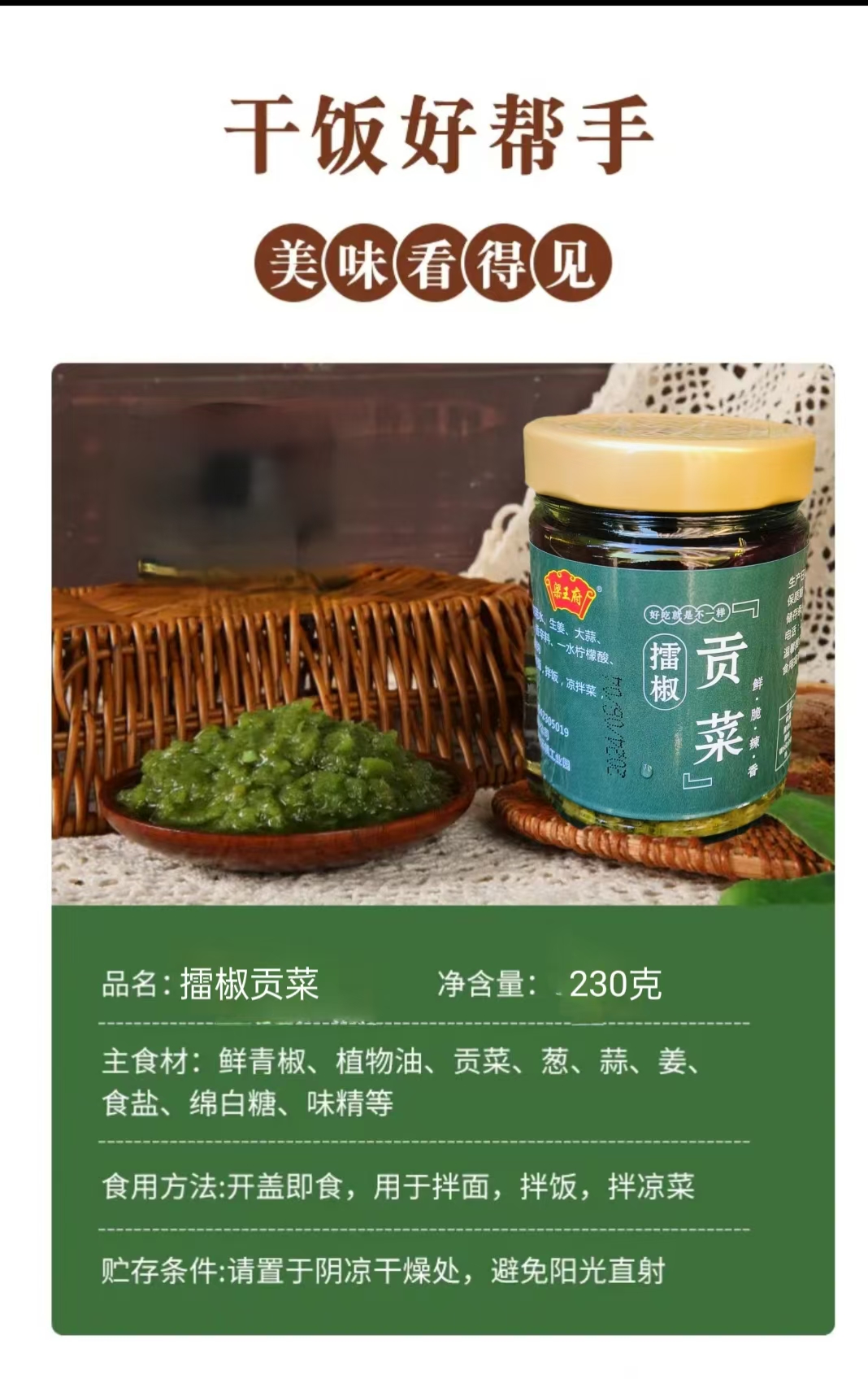 梁王府擂椒贡菜230g/瓶【XPTX】