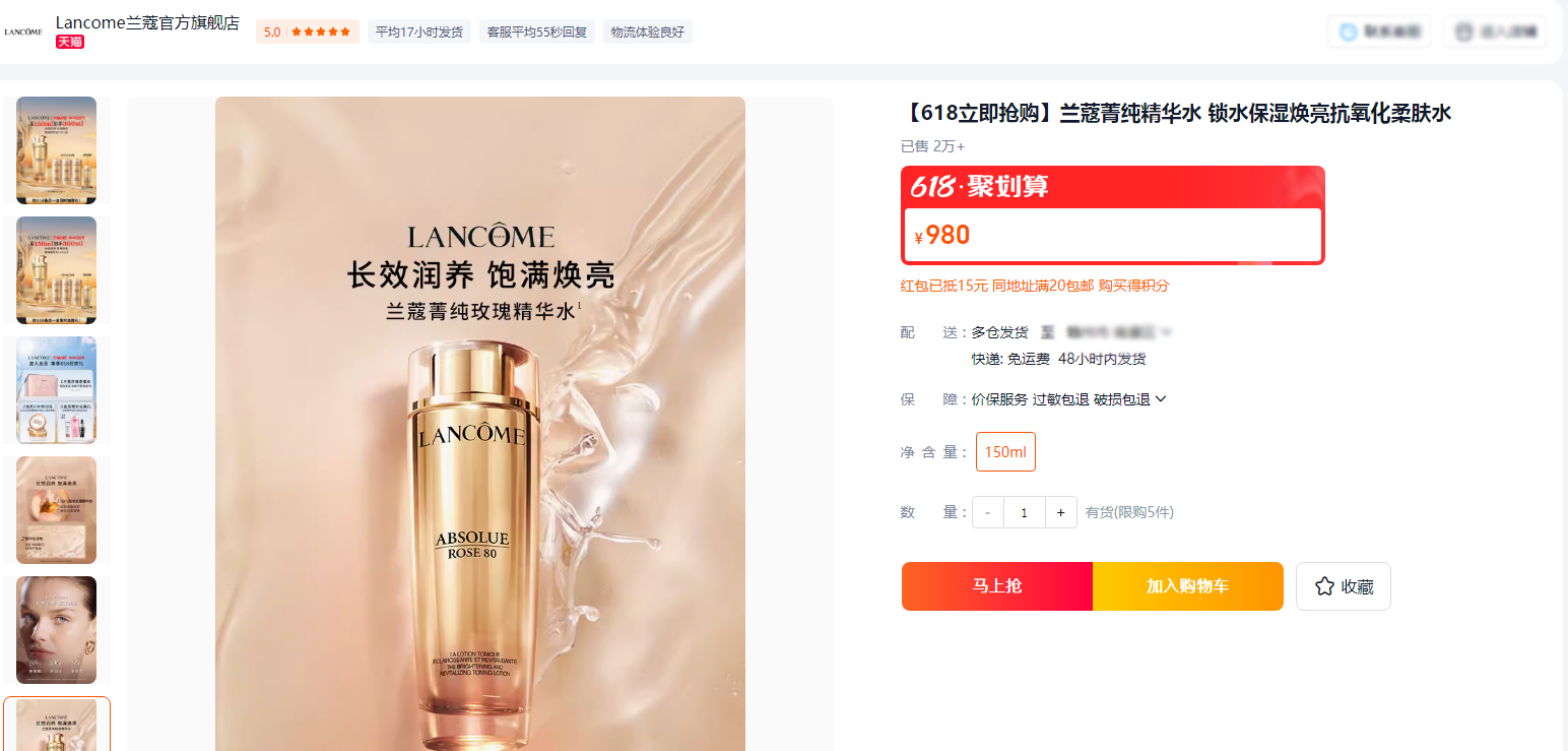 【6.17王炸割肉价】兰蔻菁纯精华水150ml 锁水保湿焕亮抗氧化柔肤水 无盒