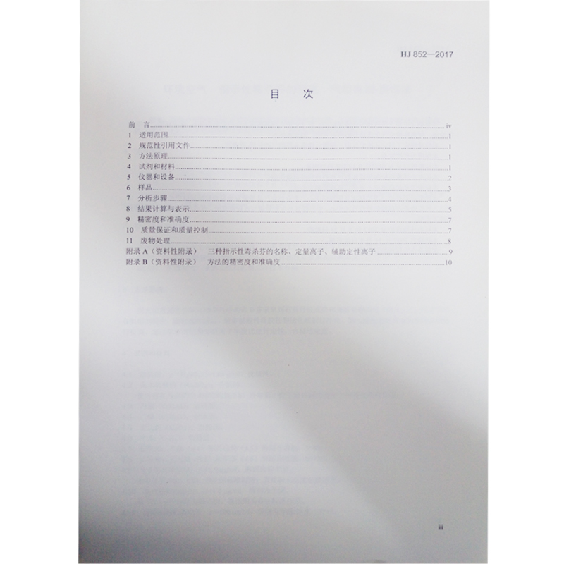 HJ 852-2017 环境空气 指示性毒杀芬的测定 气相色谱-质谱法