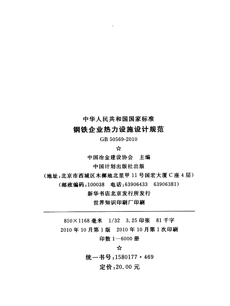 书名:GB50569-2010钢铁企业热力设施设计规范