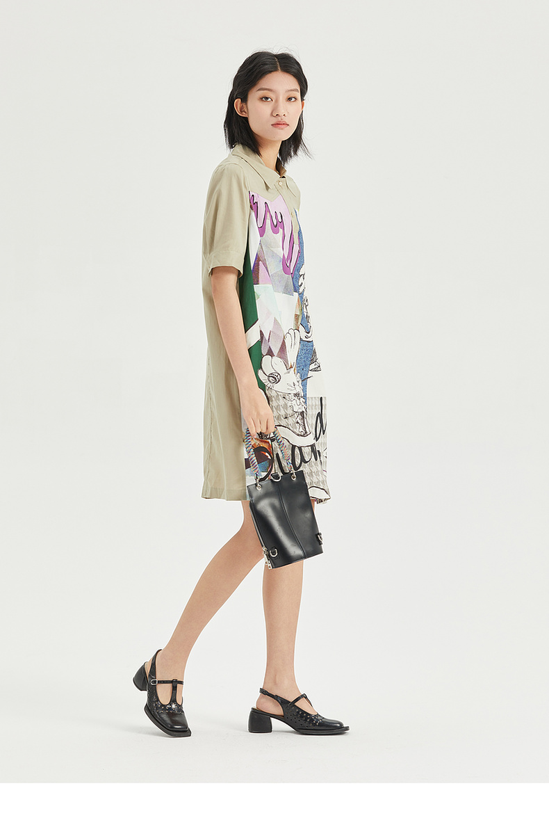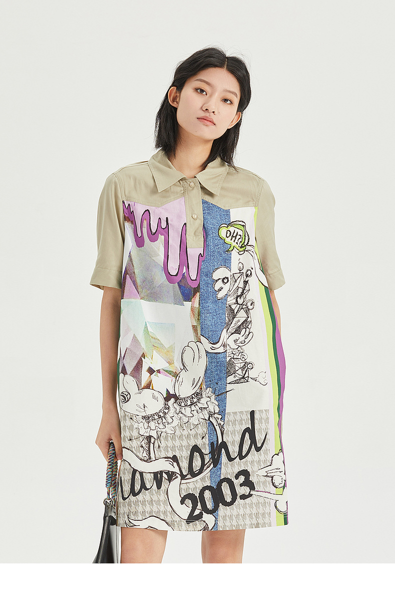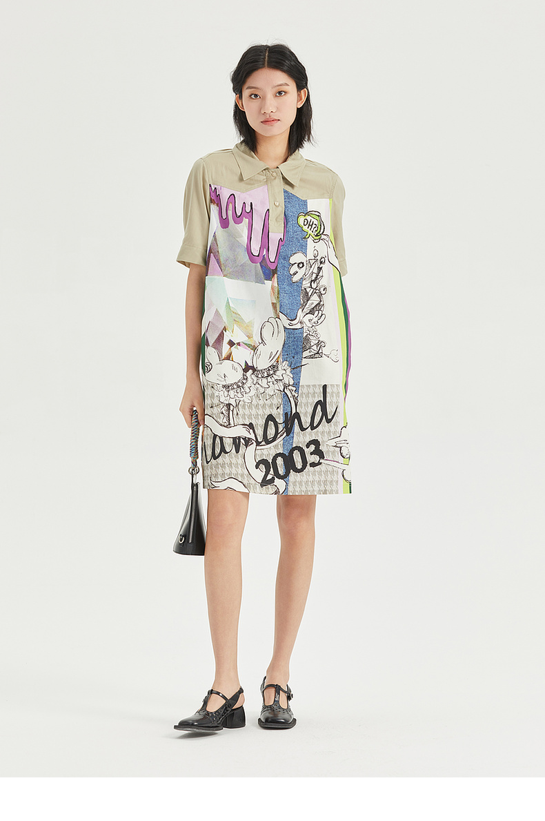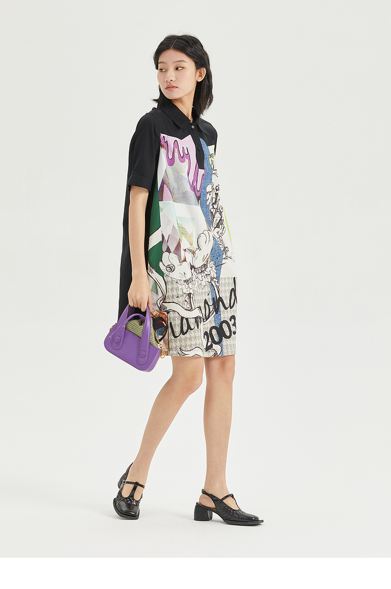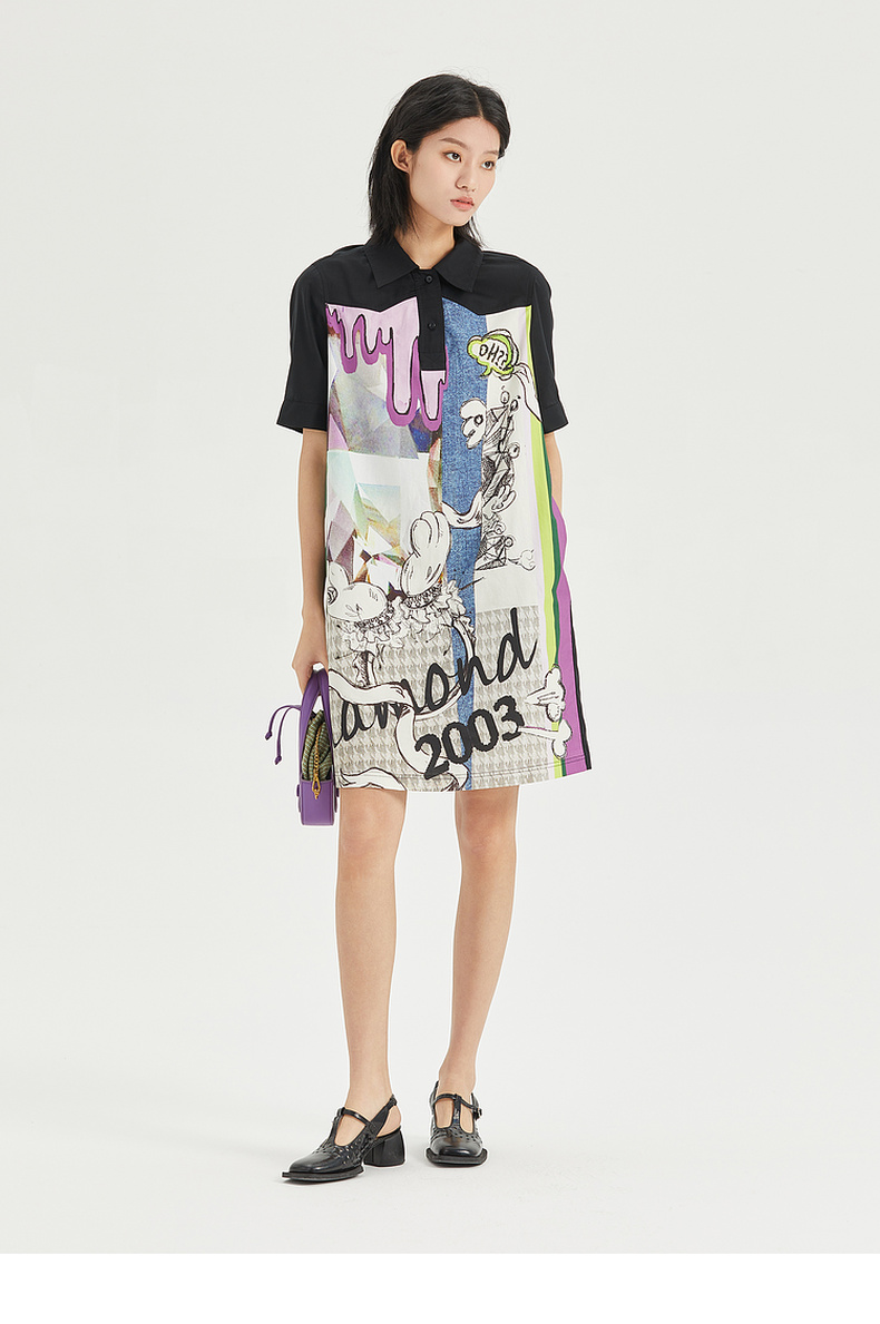 谜底连衣裙短袖2023夏款特色印花宽松显瘦中长款直筒裙236ML7095