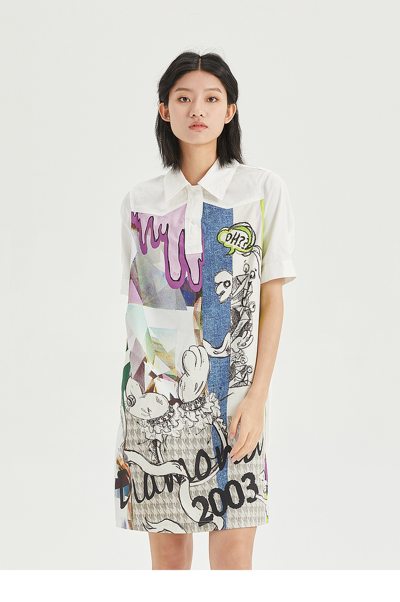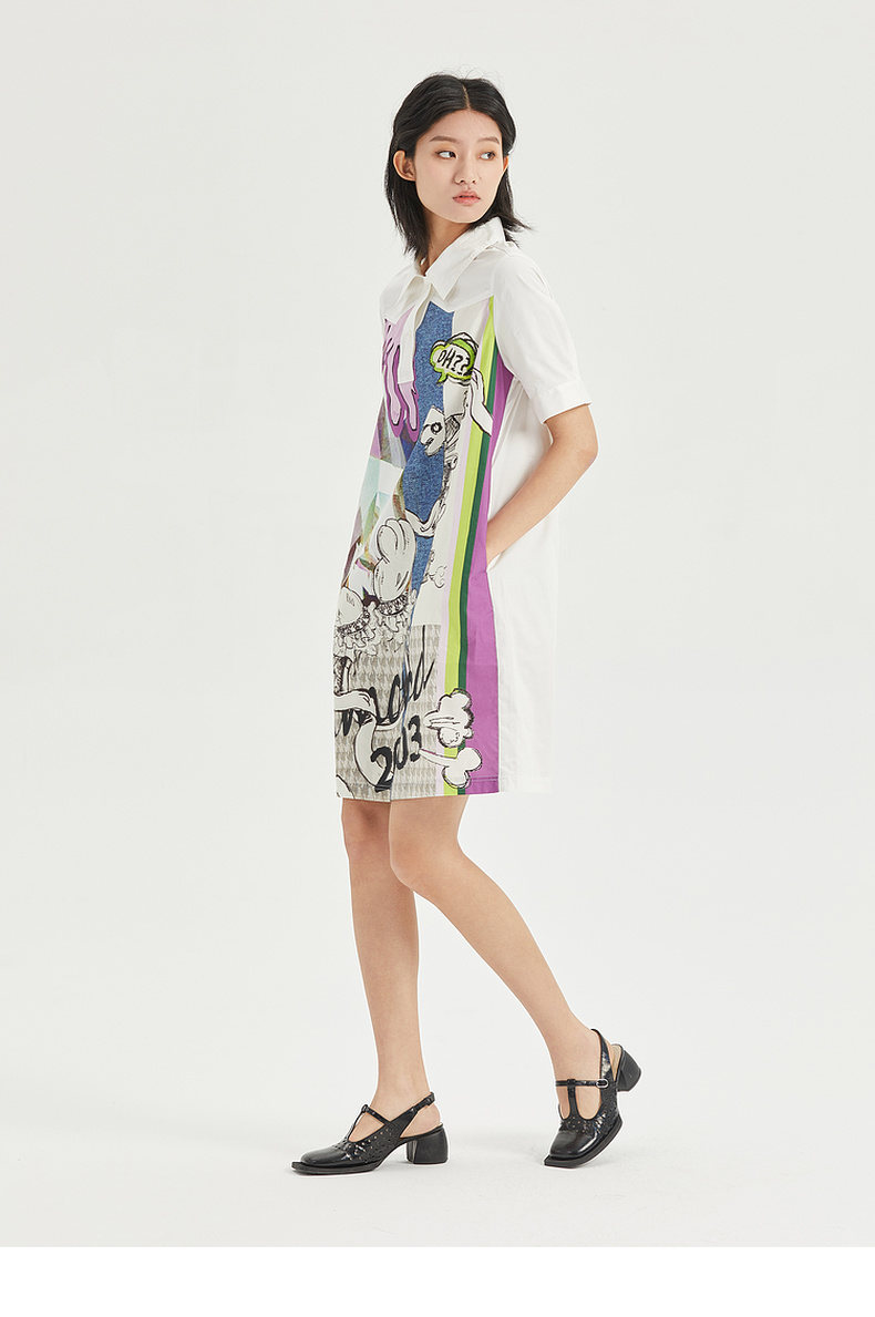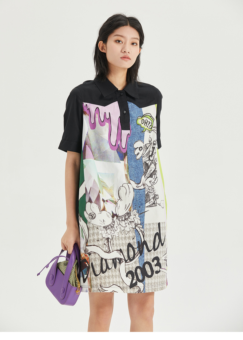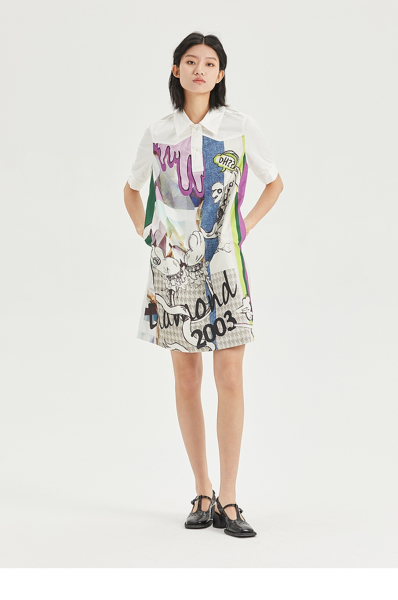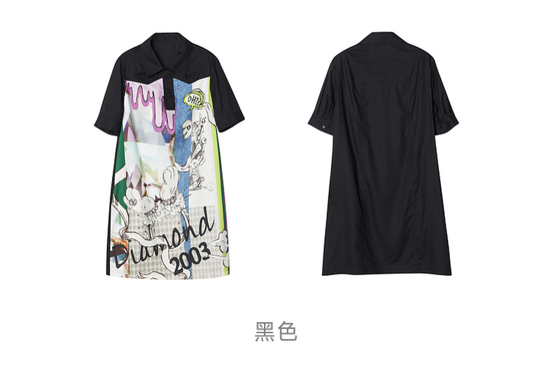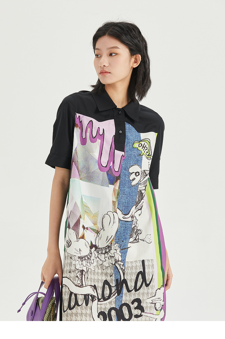 谜底连衣裙短袖2023夏款特色印花宽松显瘦中长款直筒裙236ML7095