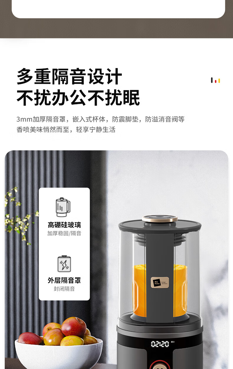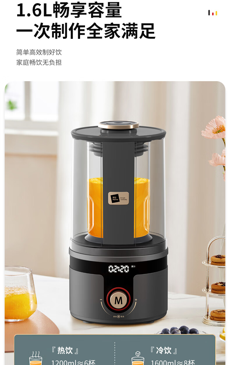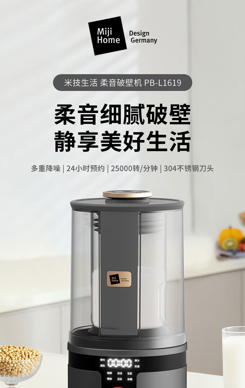 【小家电】米技(Miji Home)米技生活破壁机家用多功能柔音豆浆机 PB-L1619 灰色 HF