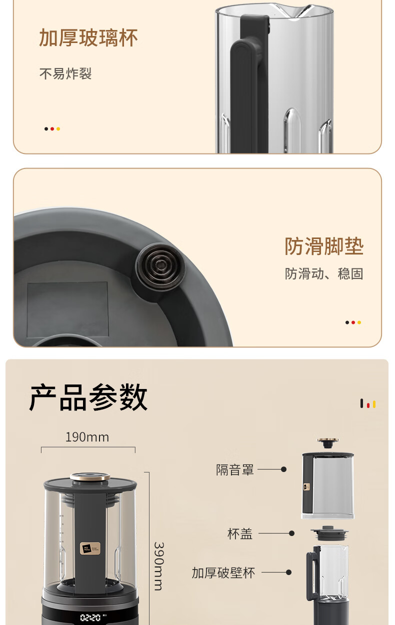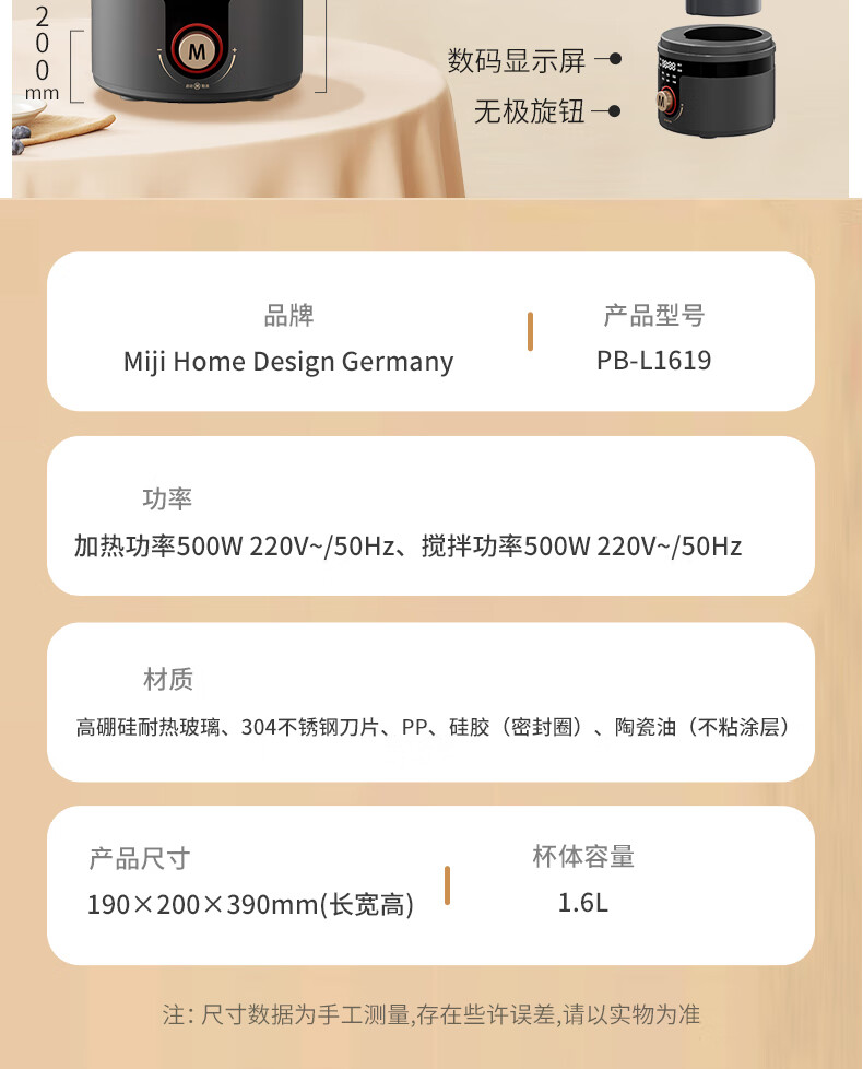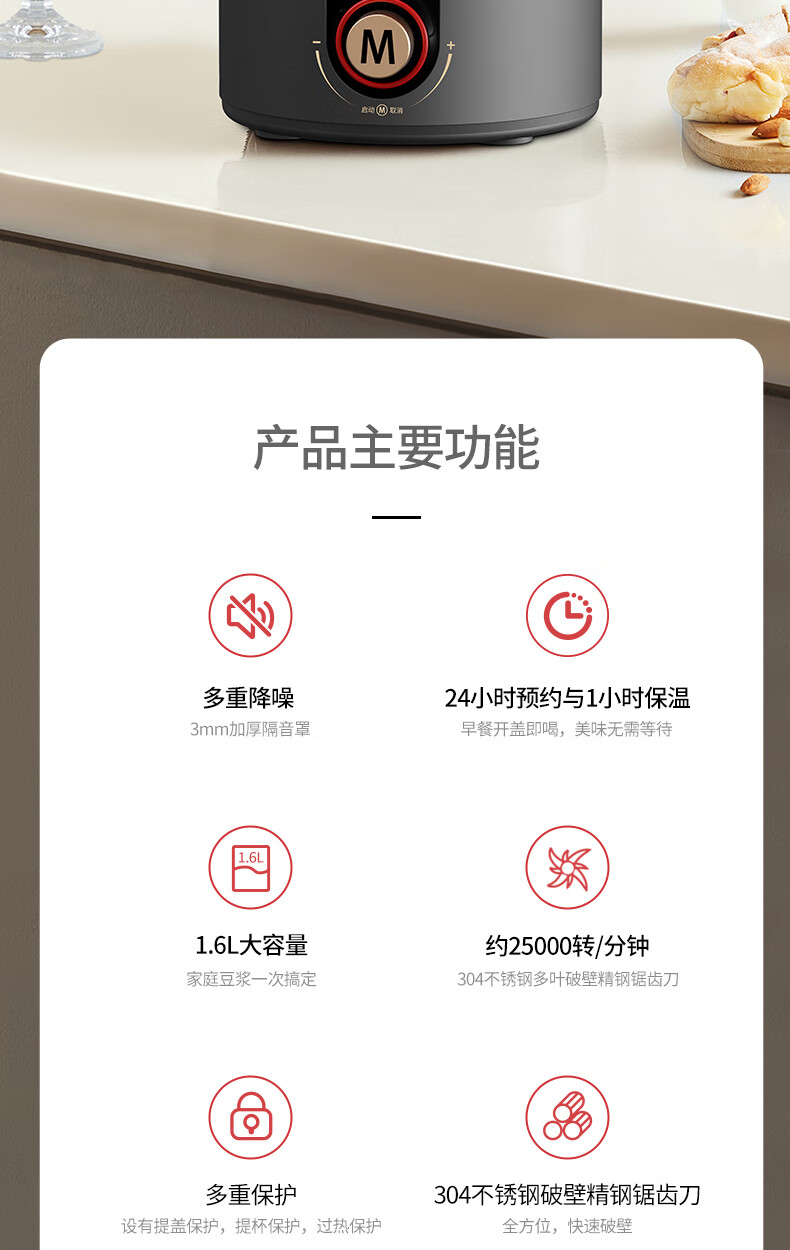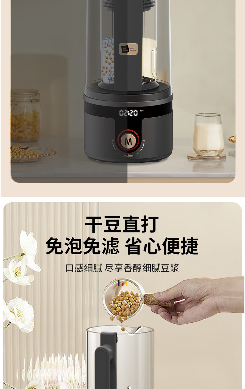 【小家电】米技(Miji Home)米技生活破壁机家用多功能柔音豆浆机 PB-L1619 灰色 HF