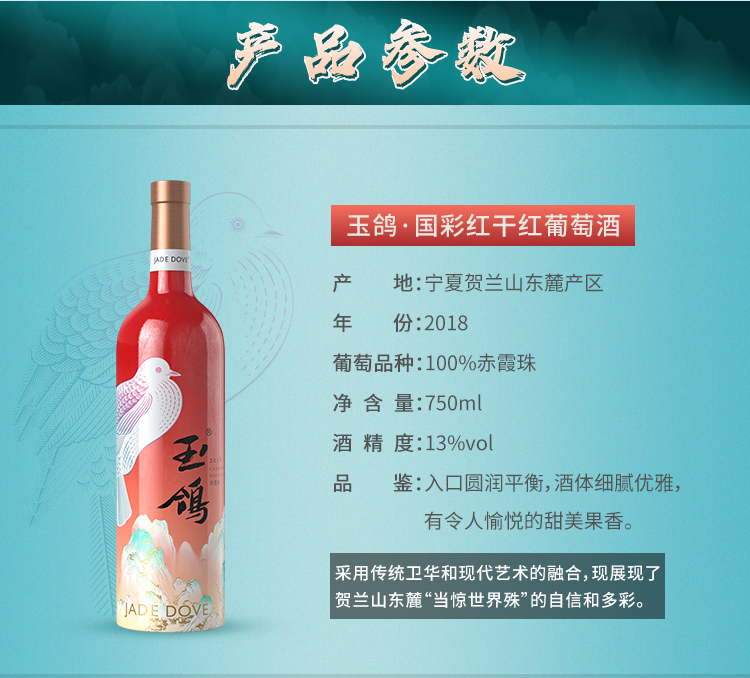 玉鸽国彩红干红葡萄酒