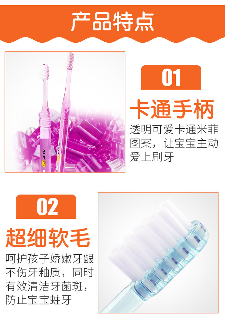 日本进口GUM米菲系列儿童专用牙刷1-5岁6-12岁#66#76#87