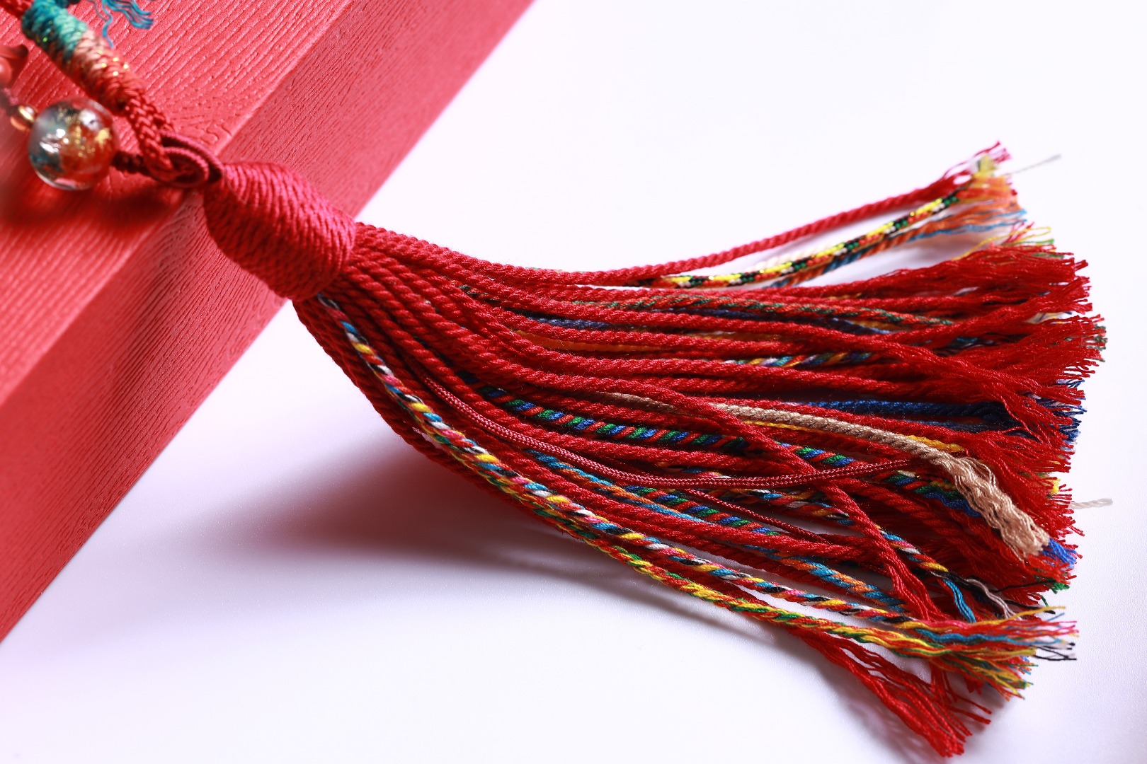 配件:香灰琉璃(金粉)敦煌色/朱砂“福”元宝/树脂金珠/香灰陶瓷(紫)/线圈(枣红)/彩棉流苏(暗红)