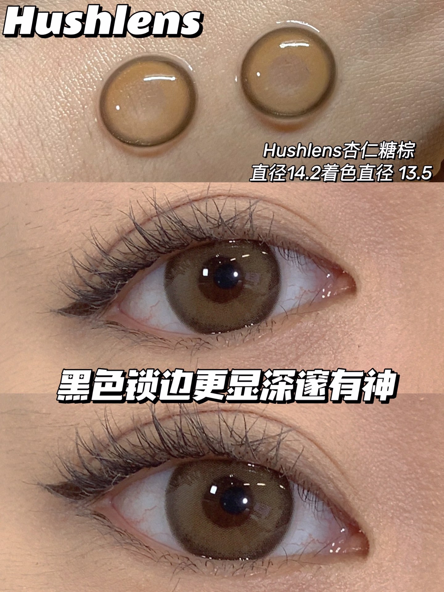 Hushlens 杏仁糖棕 年抛 2片 14.2mm 着色13.5mm 基弧8.6 含水38% 韩国进口HUSHLENS