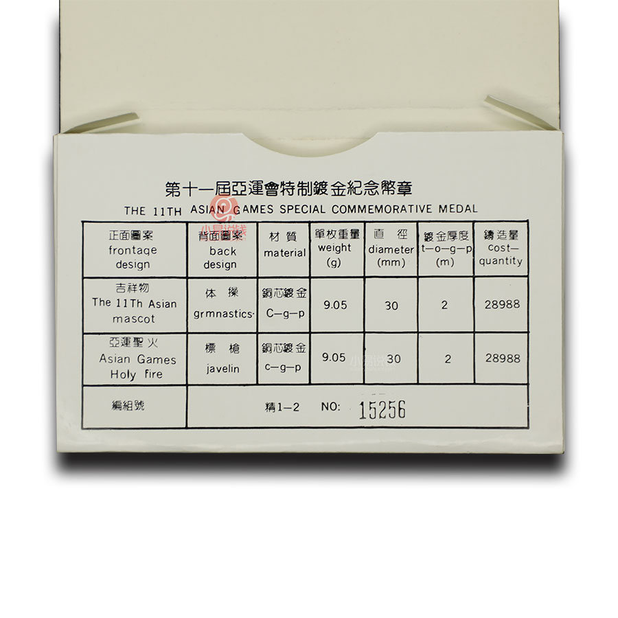 1990年,为纪念第十一届亚运会举行,沈阳造币厂发行了一套第十一届亚运会纪念章。