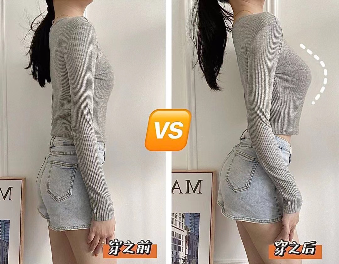 罩杯外缘向里自然增厚 增加的是正面胸部的宽度