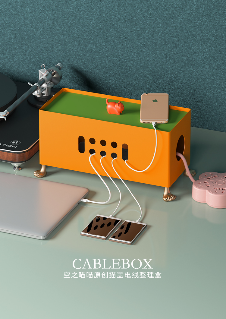 [空之喵喵]ins猫爪集线器收纳桌面电源电线收纳盒插座插排理线器