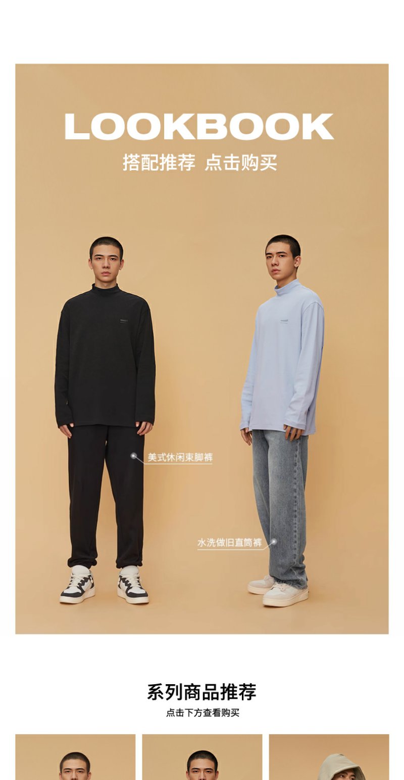 【男女同款】CHINISM CHab简约logo印花休闲长袖T恤半高领打底衫