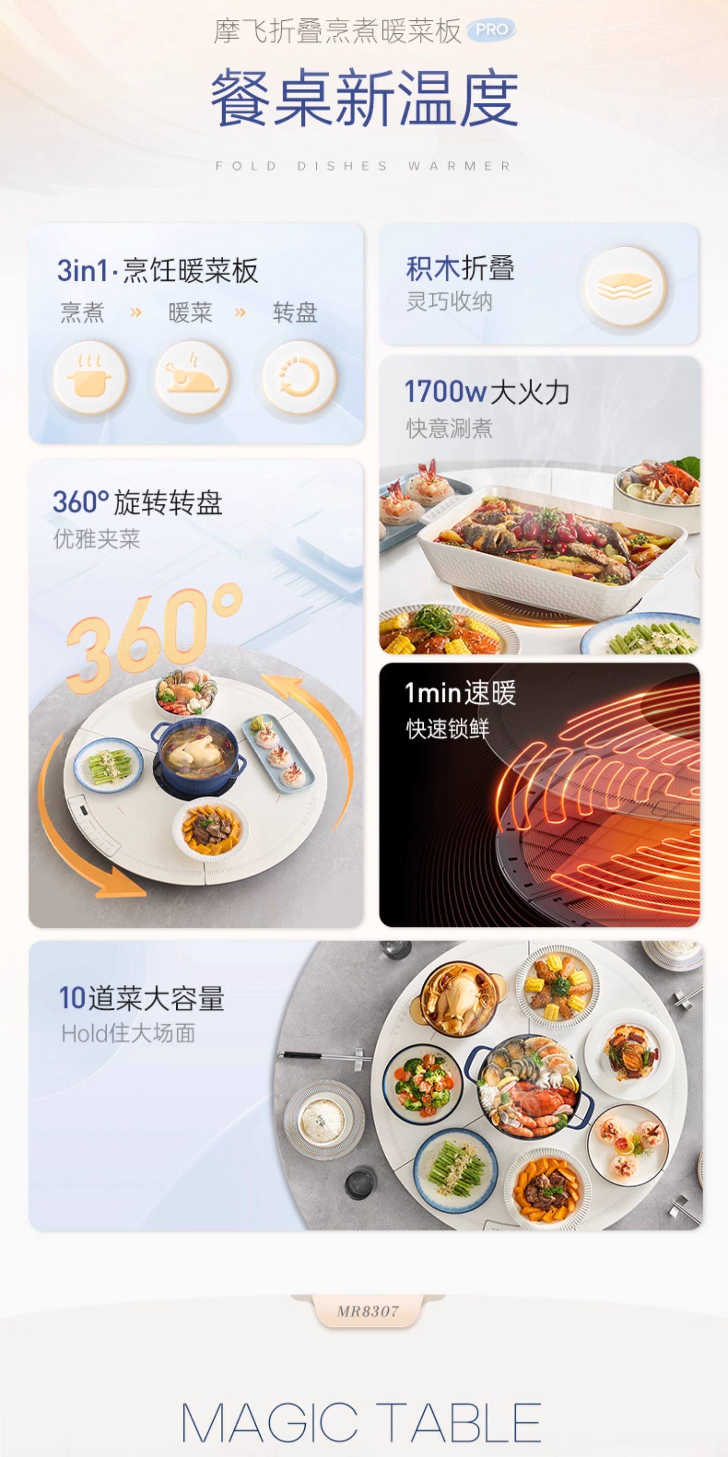 【摩飞圆形暖菜板】摩飞折叠暖菜板可旋转圆形餐桌转盘保温垫家用加热饭菜神器热菜板