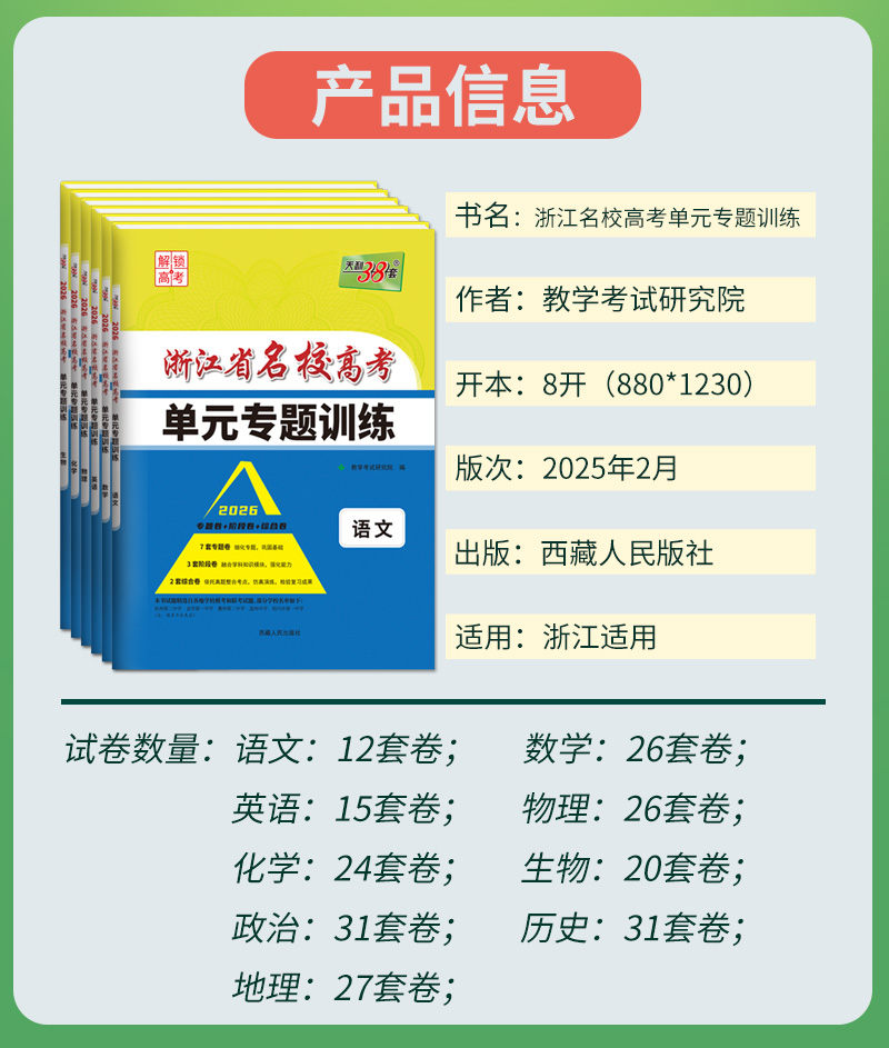 【天利38套】2026新高考浙江省名校高考单元专题训练高考一轮语文数学英语物理化学生物政治历史地理模拟试卷单元专题卷