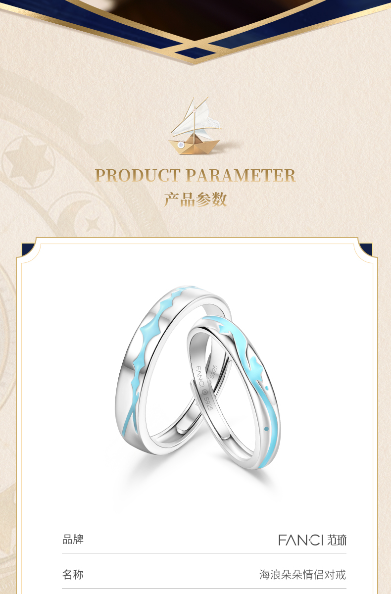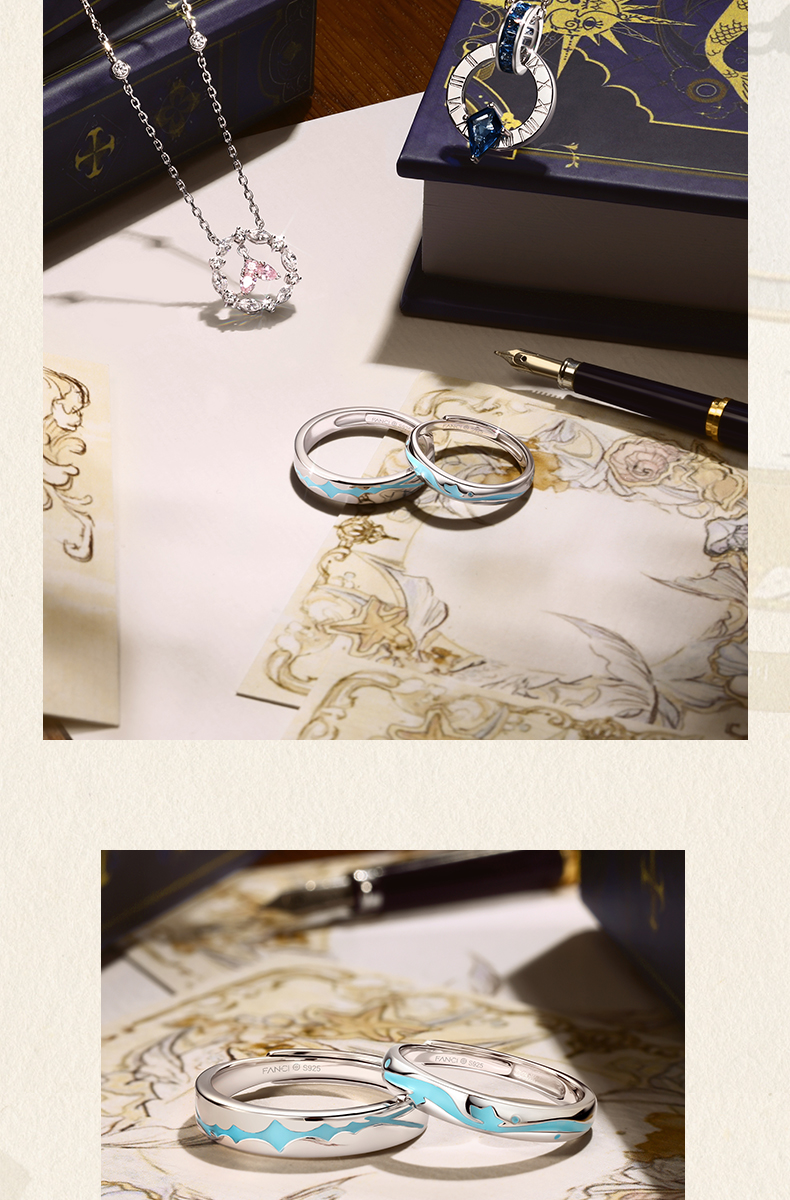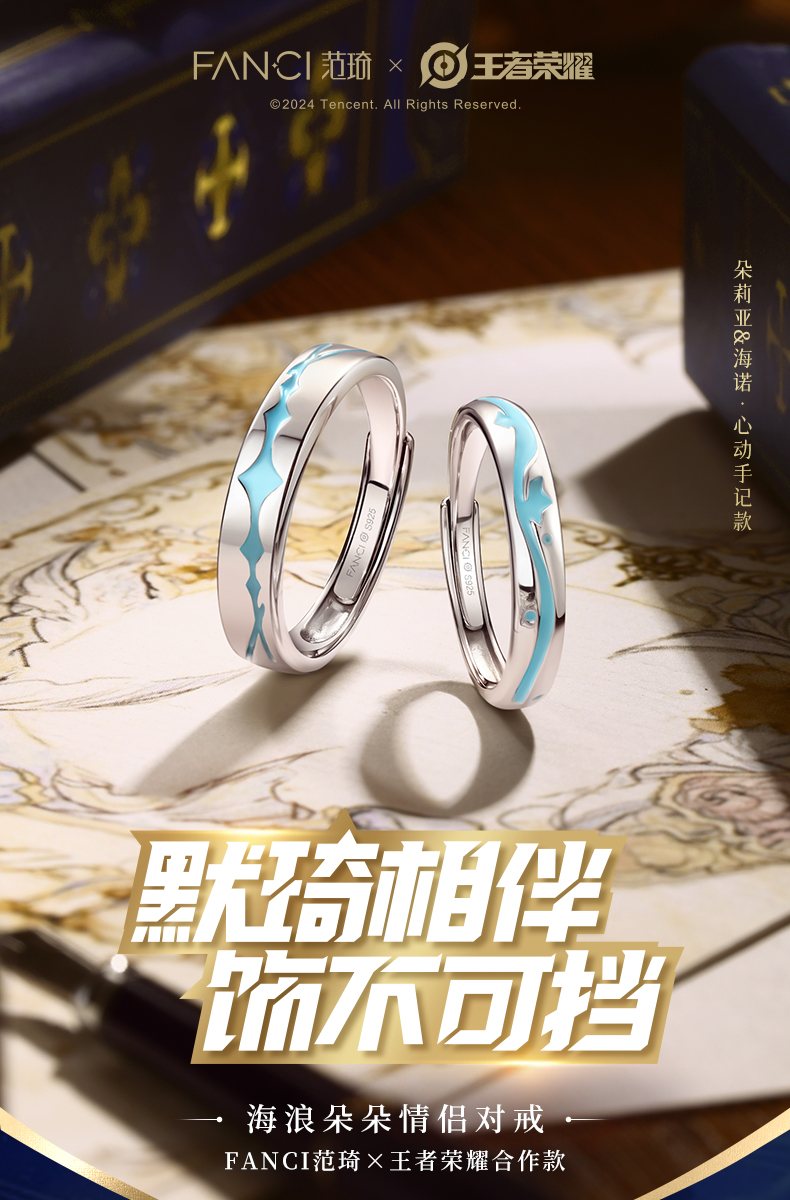 【海浪朵朵情侣对戒-开口款】范琦×王者荣耀合作款 朵莉亚&海诺·心动手记款