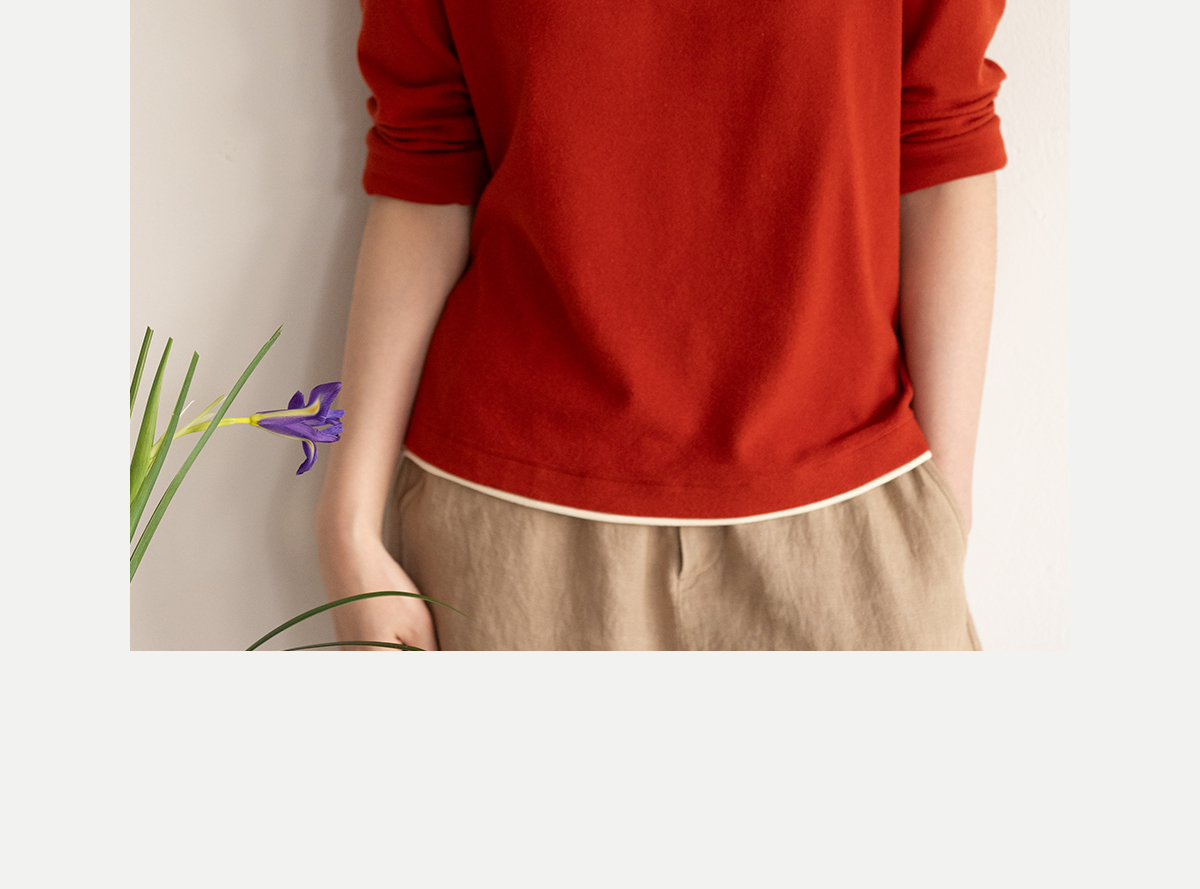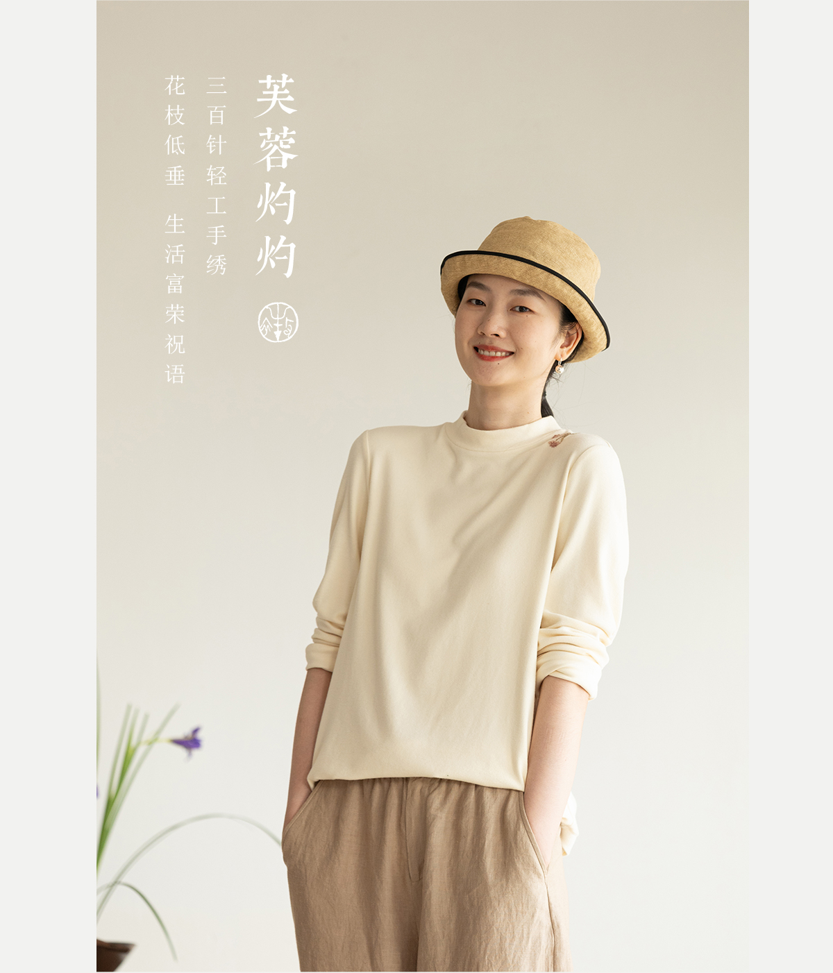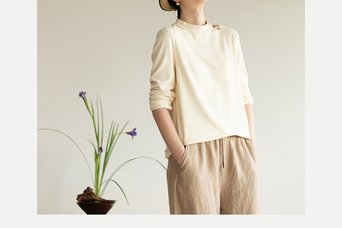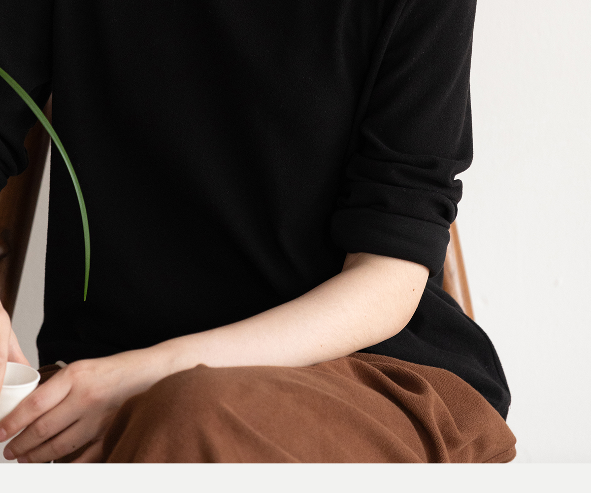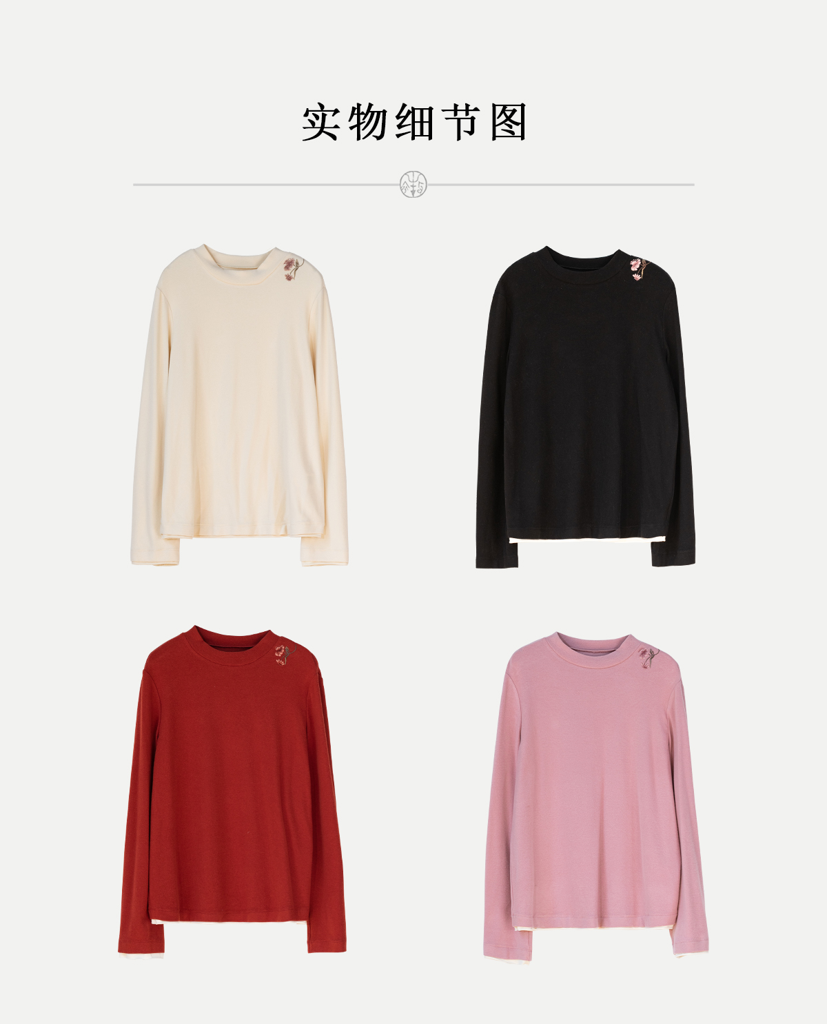 牧衣游原创 棉混纺手工刺绣T恤女秋新款保暖单穿可打底上衣 叁山