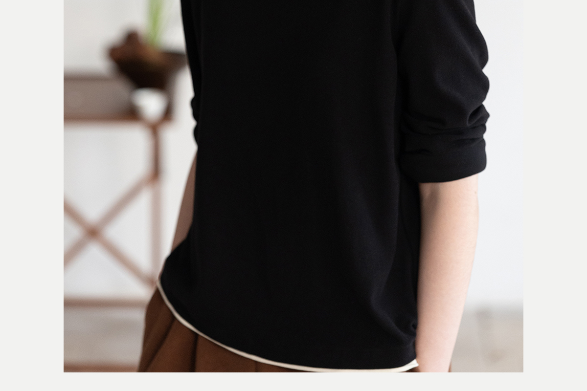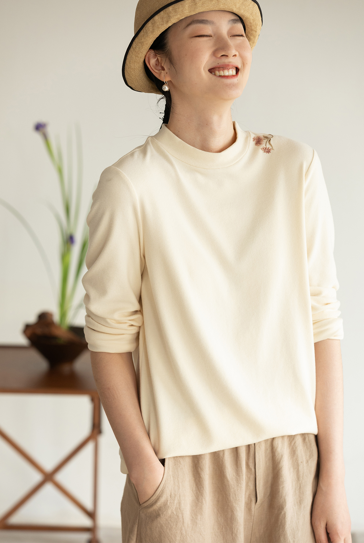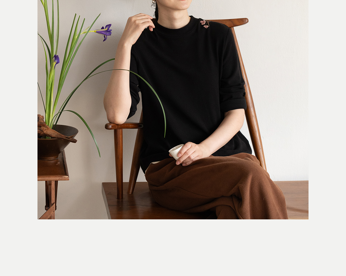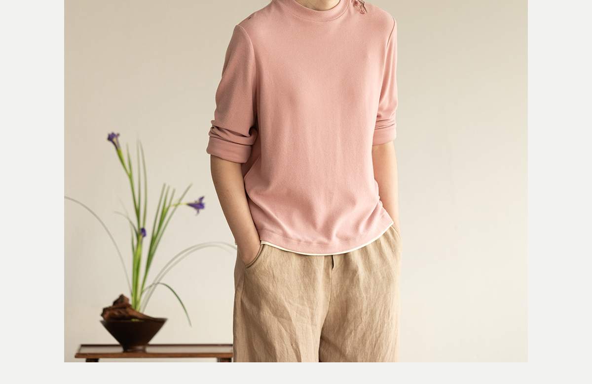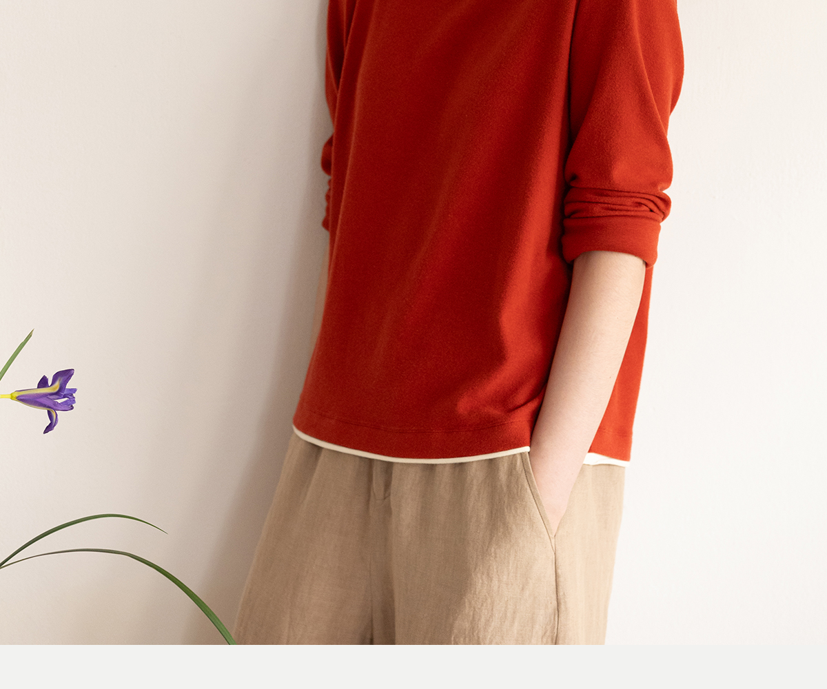 牧衣游原创 棉混纺手工刺绣T恤女秋新款保暖单穿可打底上衣 叁山