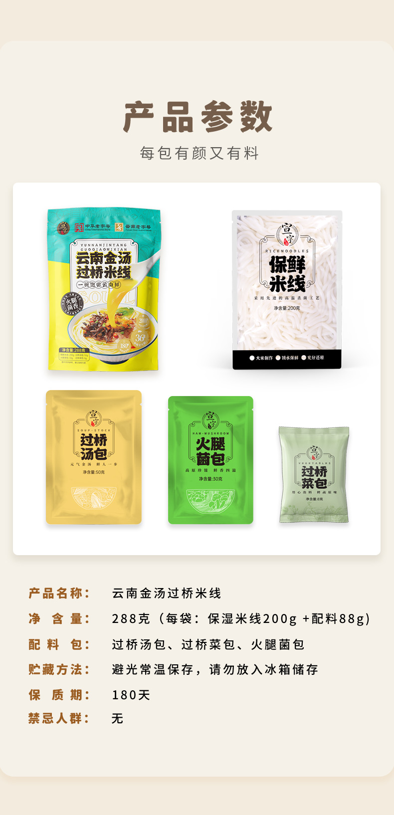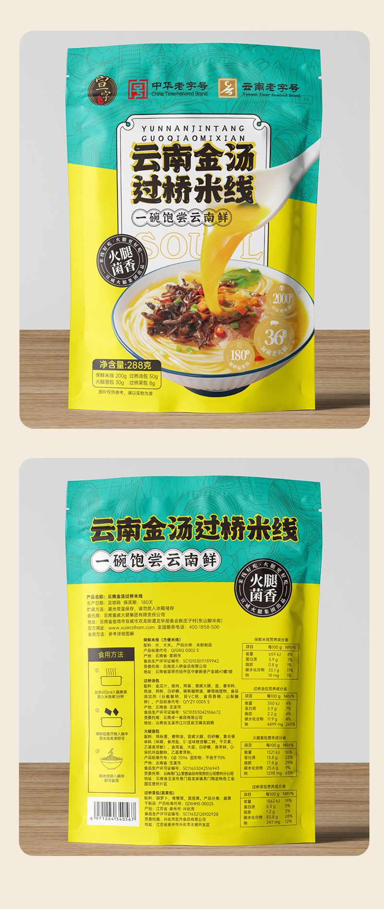 宣字 云南金汤过桥米线288g*3袋装 云南特产火腿鸡枞菌香方便米线