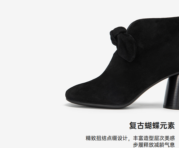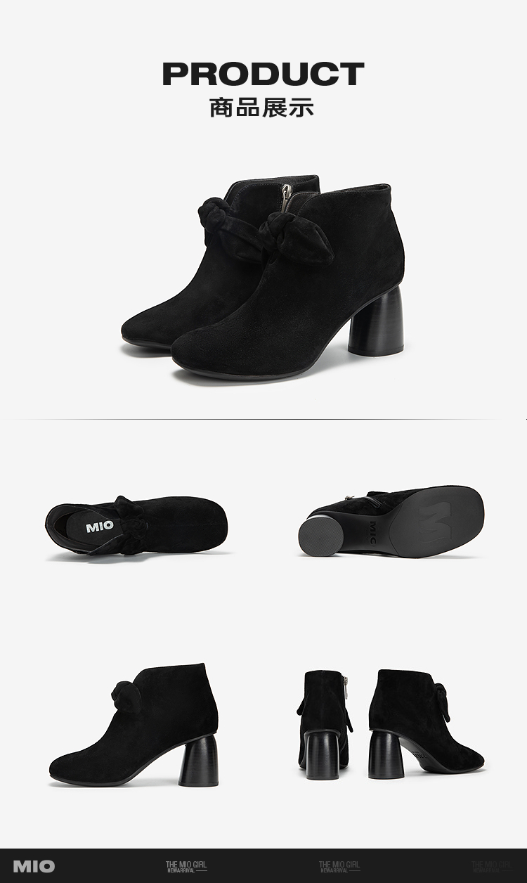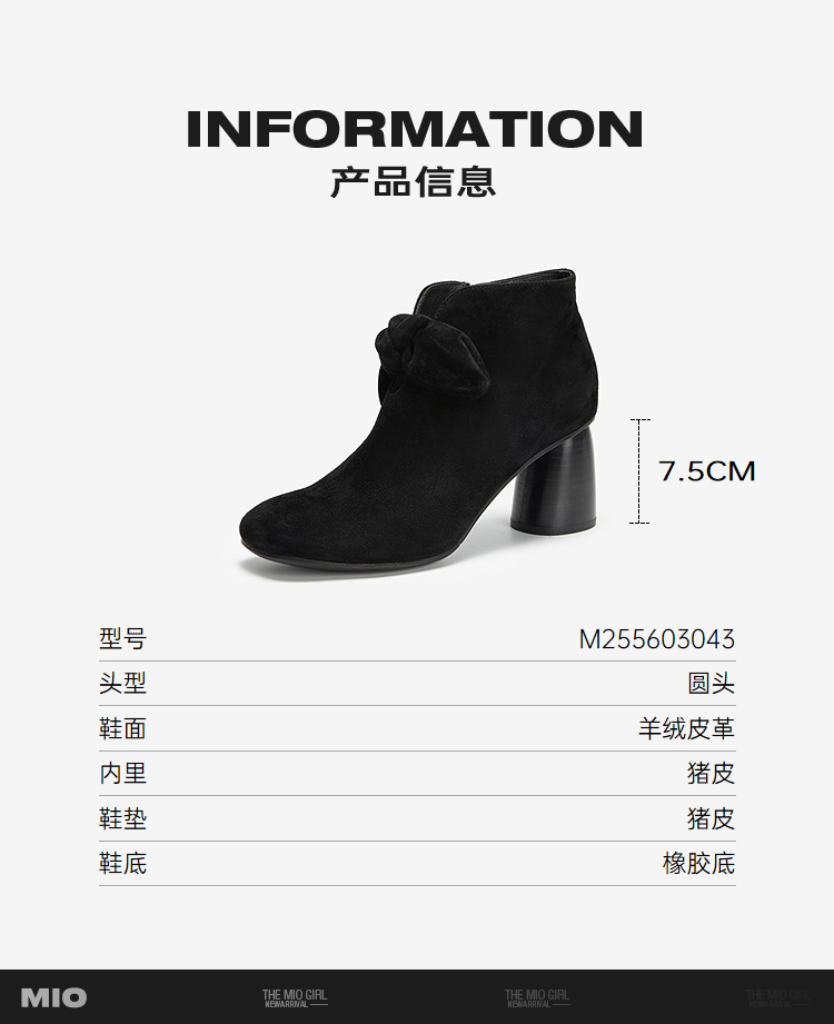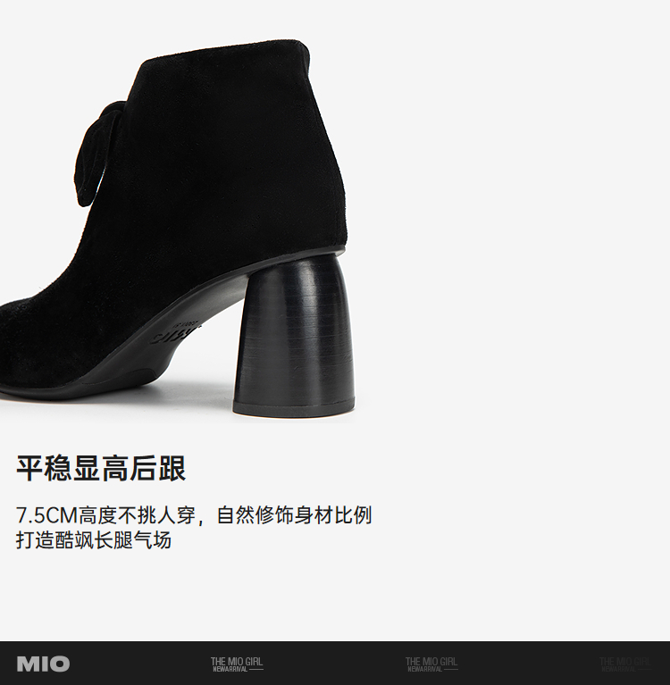 MIO米奥时装靴粗跟圆头拉链增高女靴马丁靴短筒靴子M255603043
