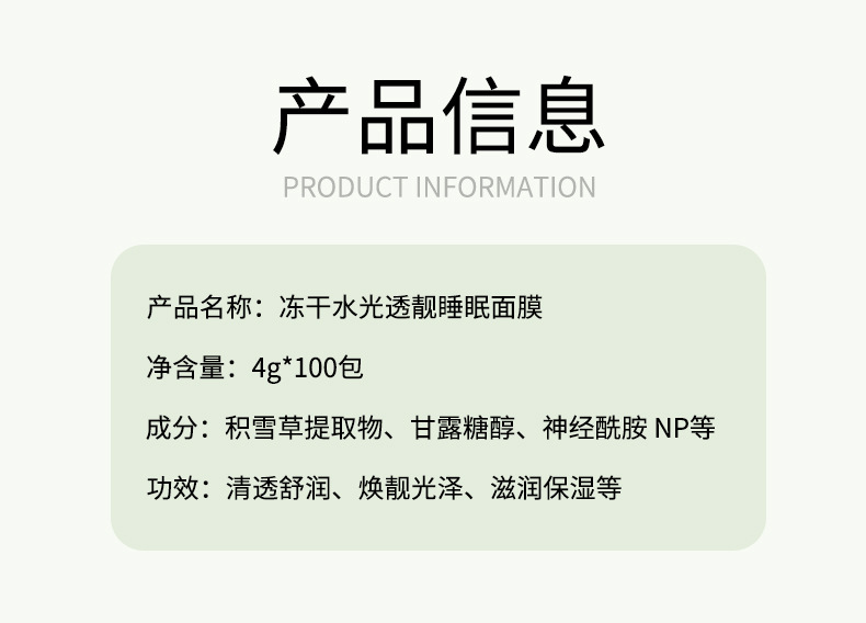 冰肤之萃冻干水光透亮睡眠面膜补水保湿涂抹面膜紧致肌肤免洗面膜