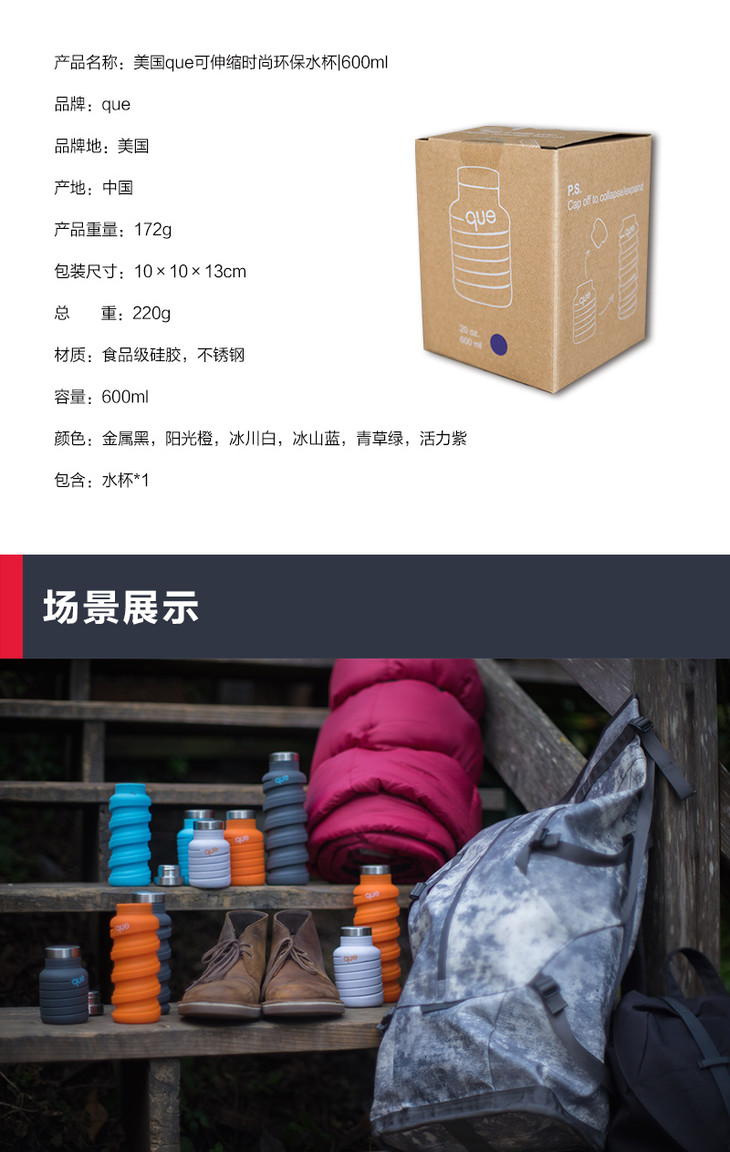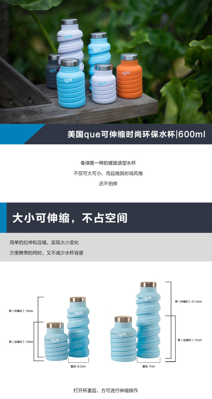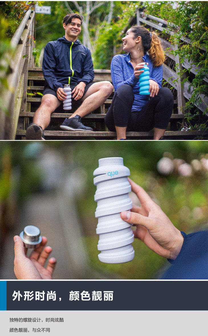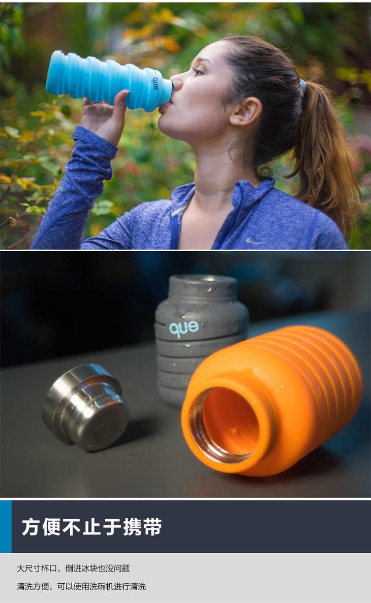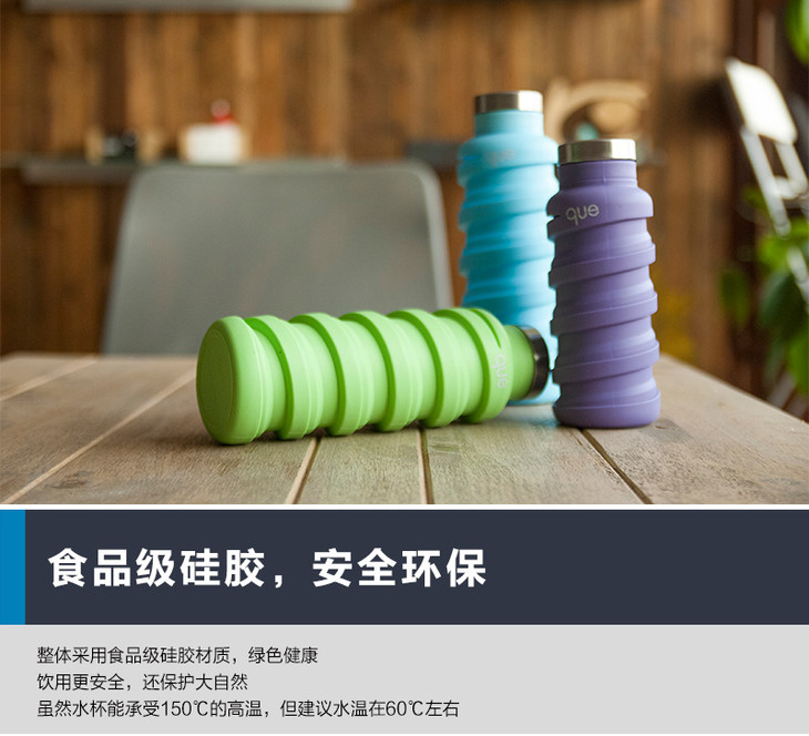 【已下架】积分购 | 美国queBottle可伸缩环保硅胶时尚水杯355ML (不支持无理由退换)[福利品]