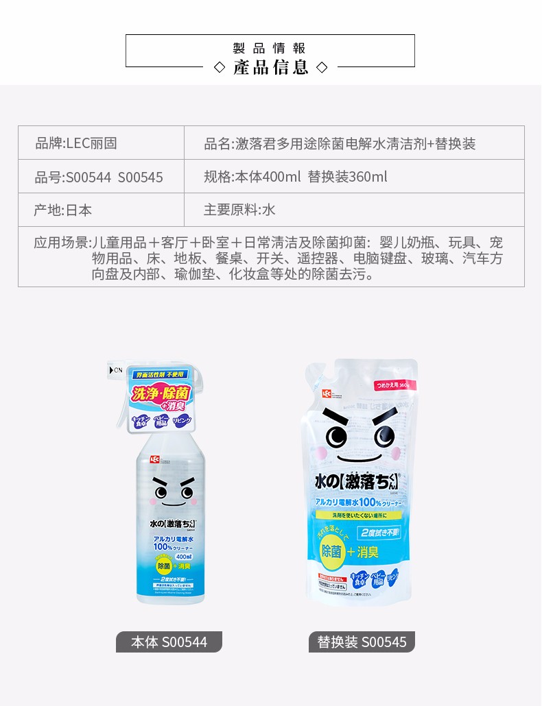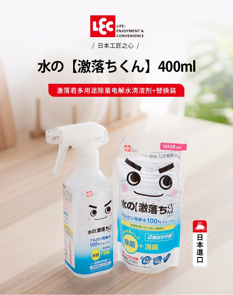 日本LEC激落君冰箱专用电解水除臭味消毒杀菌除异味家用清洁剂清洗神器(400ml)-YHD