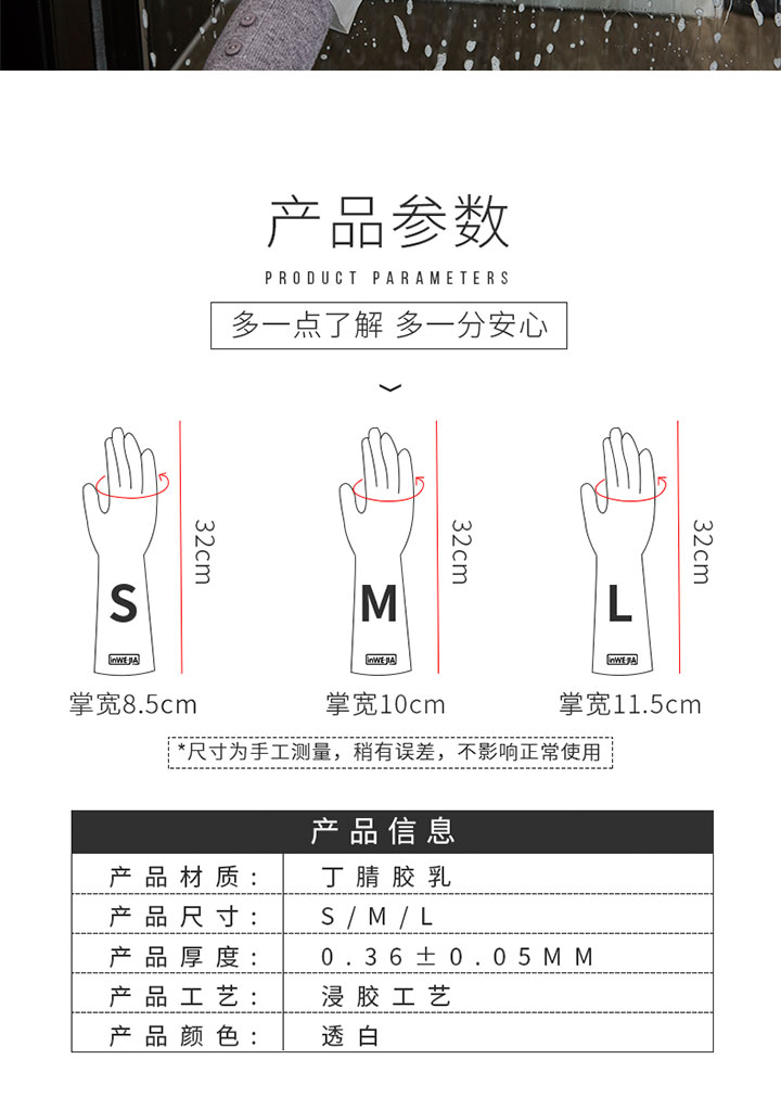 积分换购 | inwejia 丁腈手套 防切防穿刺防水防滑(厚款)2双[福利品]