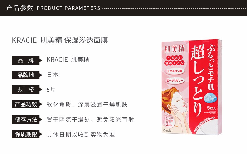 Kanebo嘉娜宝 KRACIE肌美精 保湿渗透面膜 红色 5片*2盒 日本