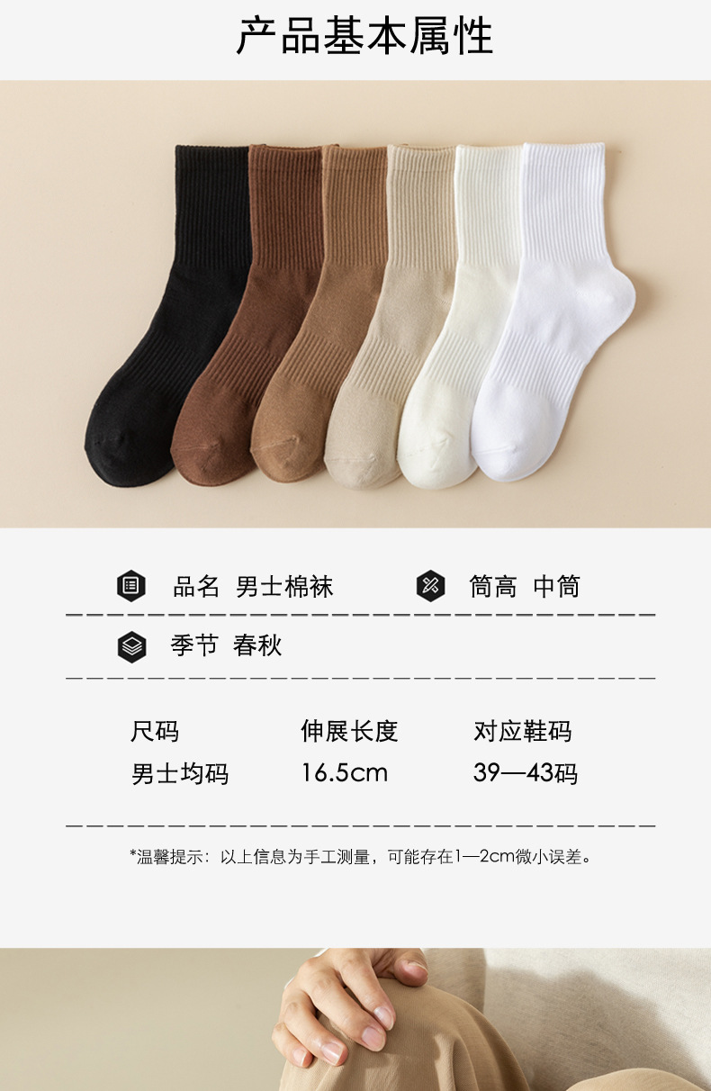 「7双装!数色可选」南极人诸暨袜子男士春秋ins潮运动袜白色中筒长袜配饰