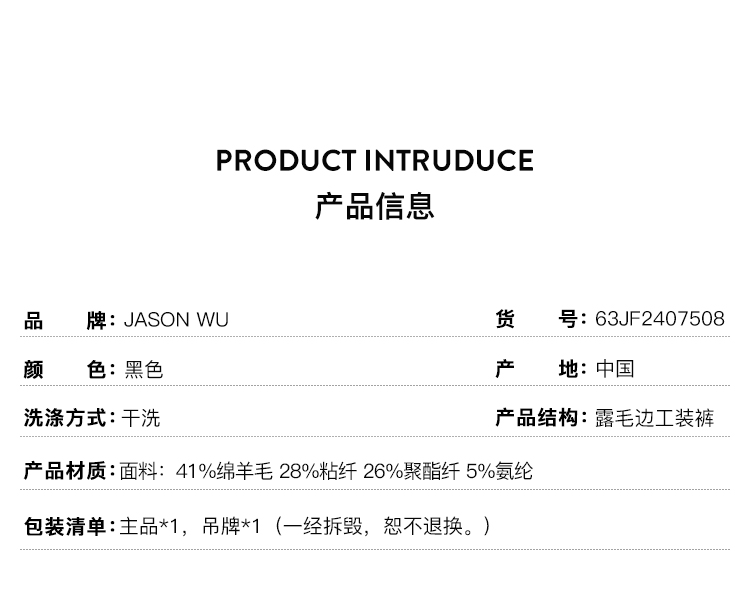 【JASON WU】秋冬新款精纺羊毛宽松通勤百搭裤子休闲裤工装裤女