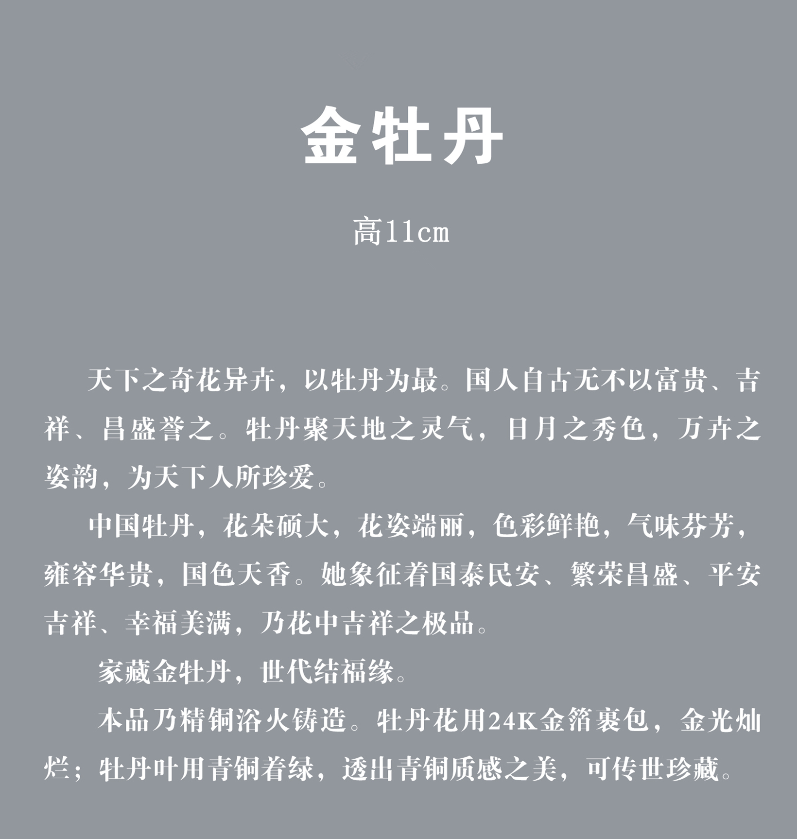 宇达青铜全铜摆件《金牡丹》创意礼品 工艺品 家居摆件 高11cm