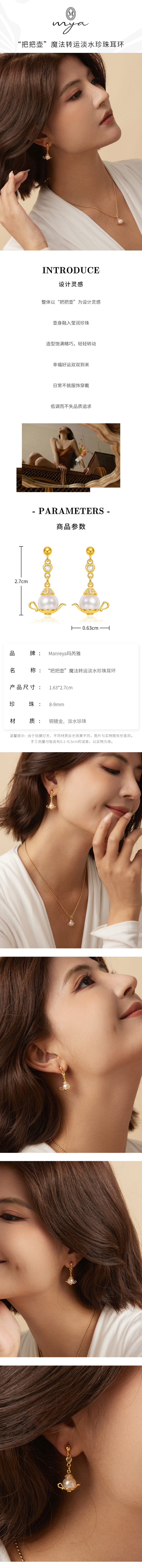 Manreya玛芮雅“把把壶”魔法转运淡水珍珠耳环