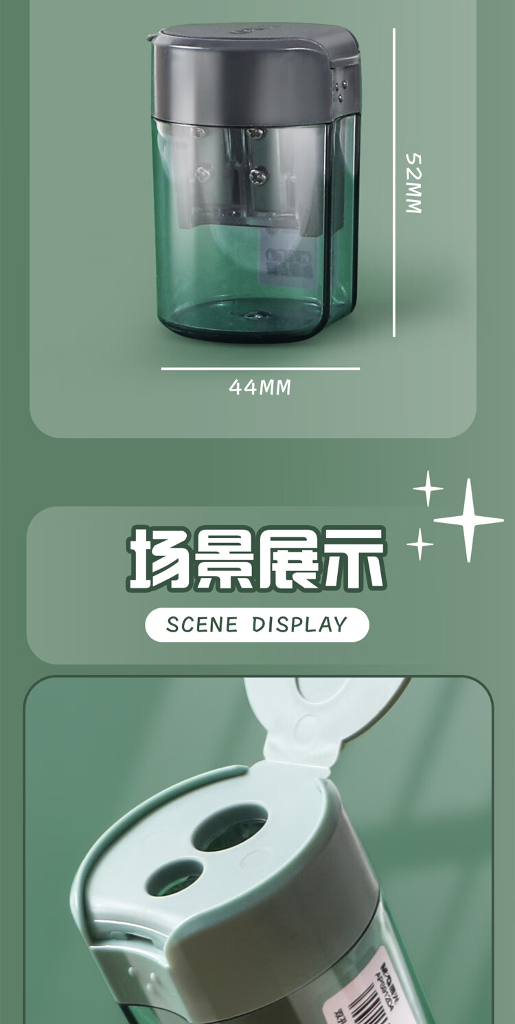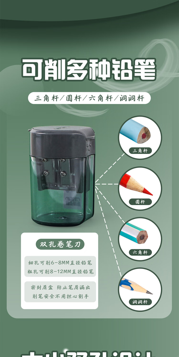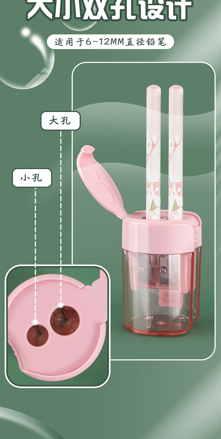 APS912D4晨光卷笔刀大小双孔大容量省力转笔刀便携中小学生铅笔刀木杆铅笔(颜色随机)