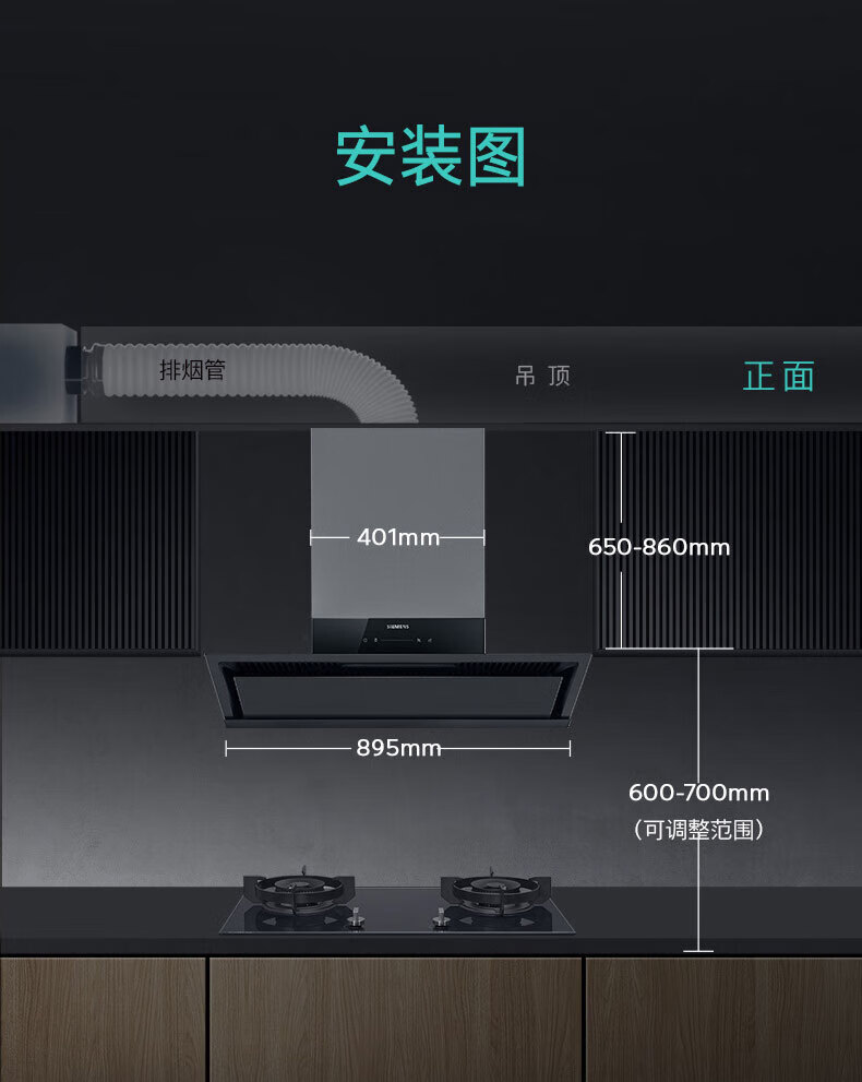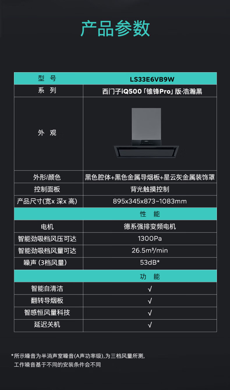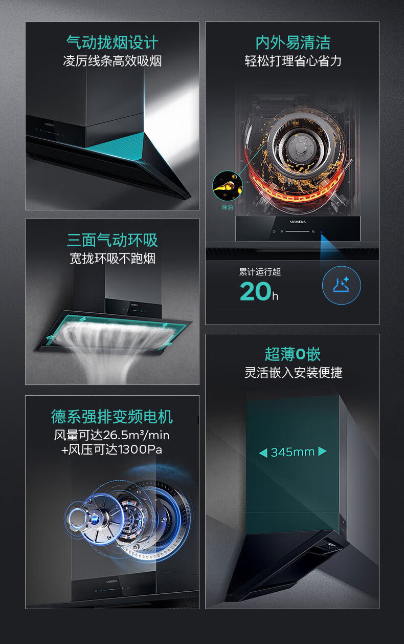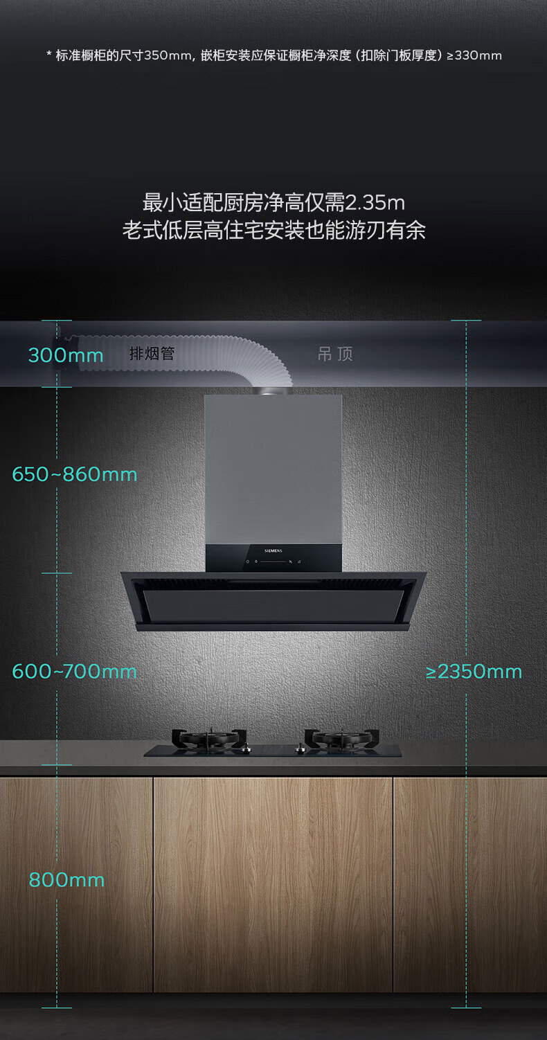 西门子(SIEMENS)抽油烟机新品 iQ300 超薄零嵌入式吸油烟机黑色家电器排净烟机排烟罩 LS33E6VB9W